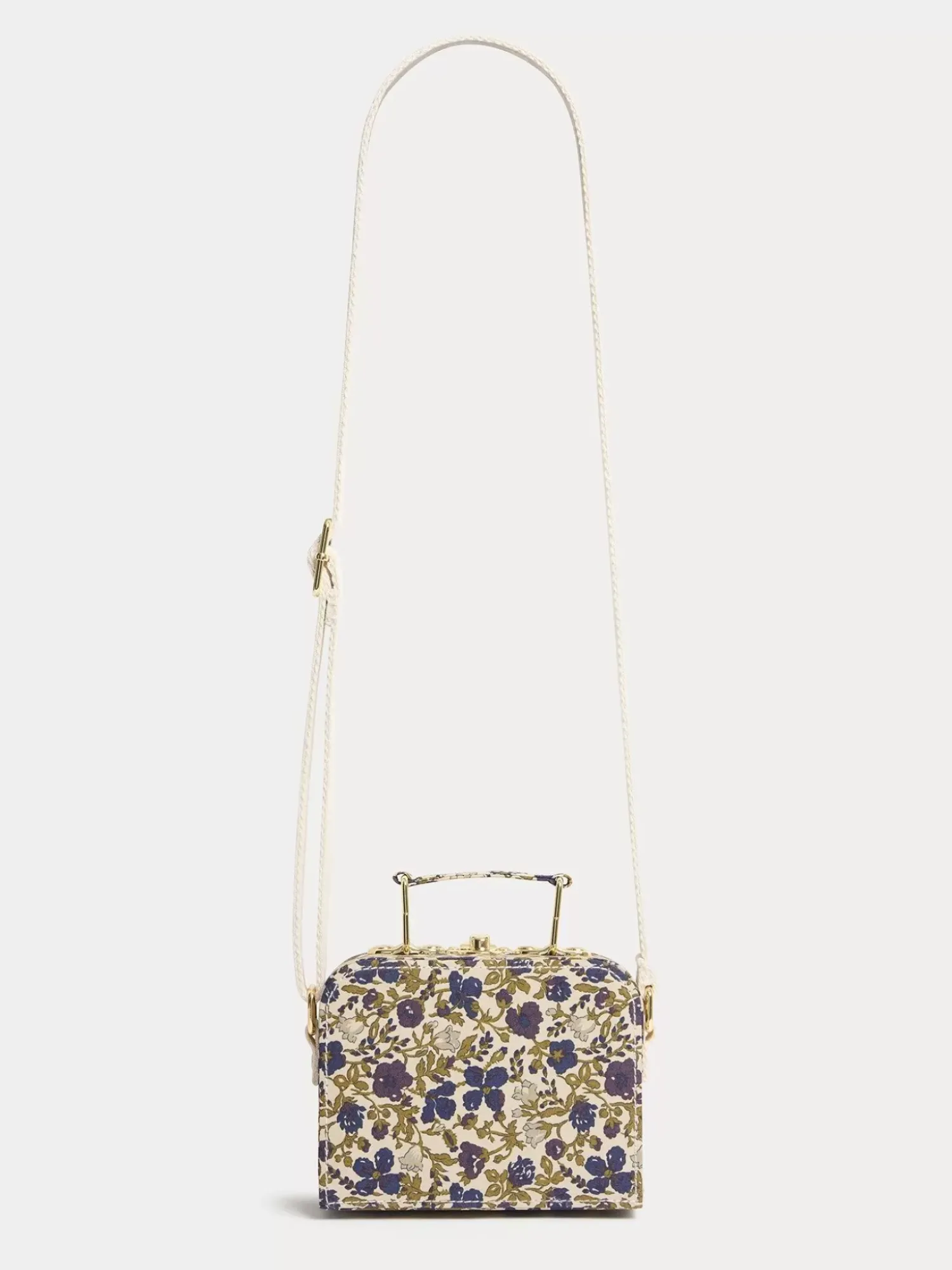 This Aimane Suitcase Purse For Girls Features A Certified Organic Cotton Liberty Floral Print And A Cherry Logo On The Front. It Can Be Carried In The Hand Or Over The Shoulder.