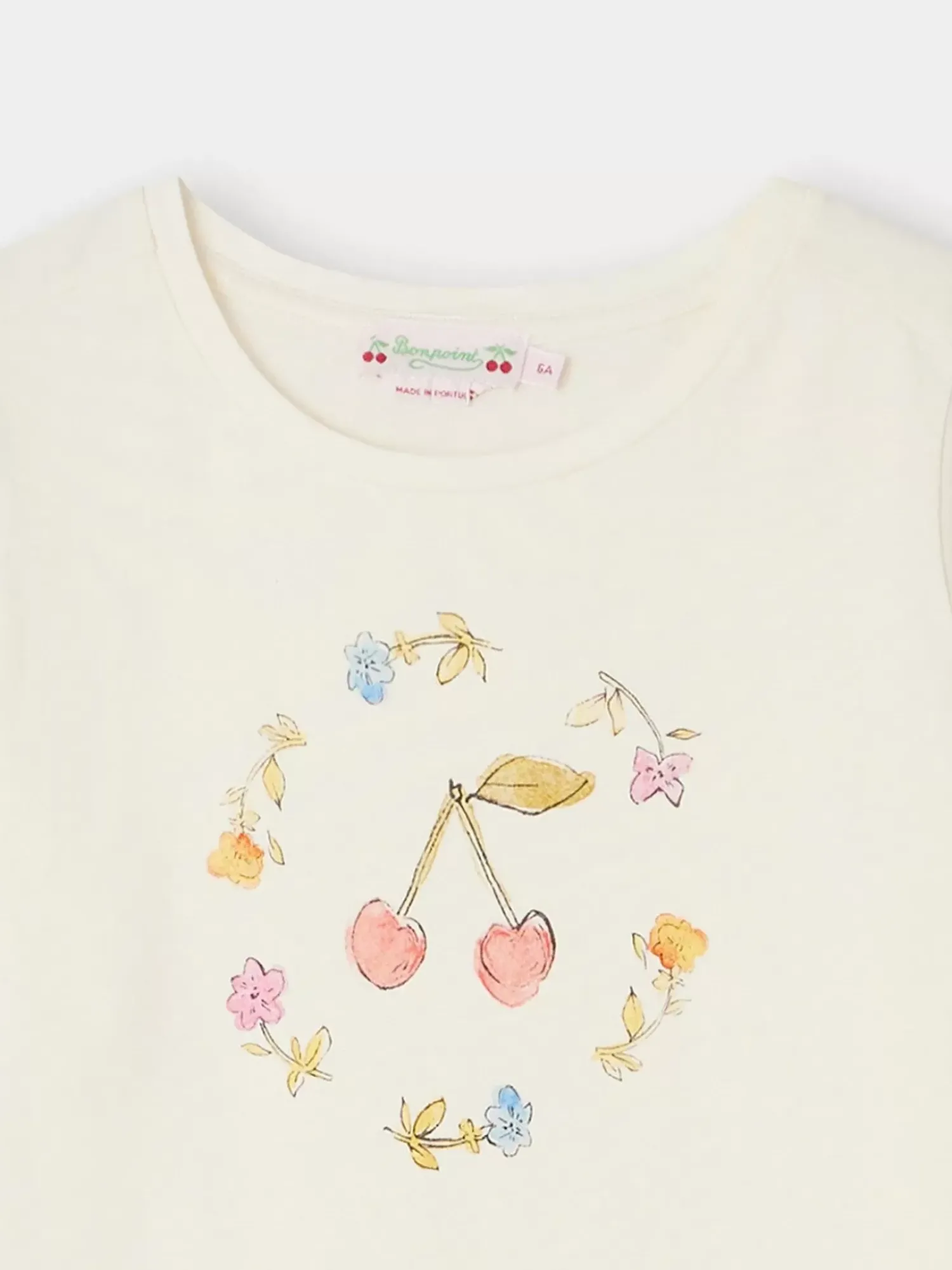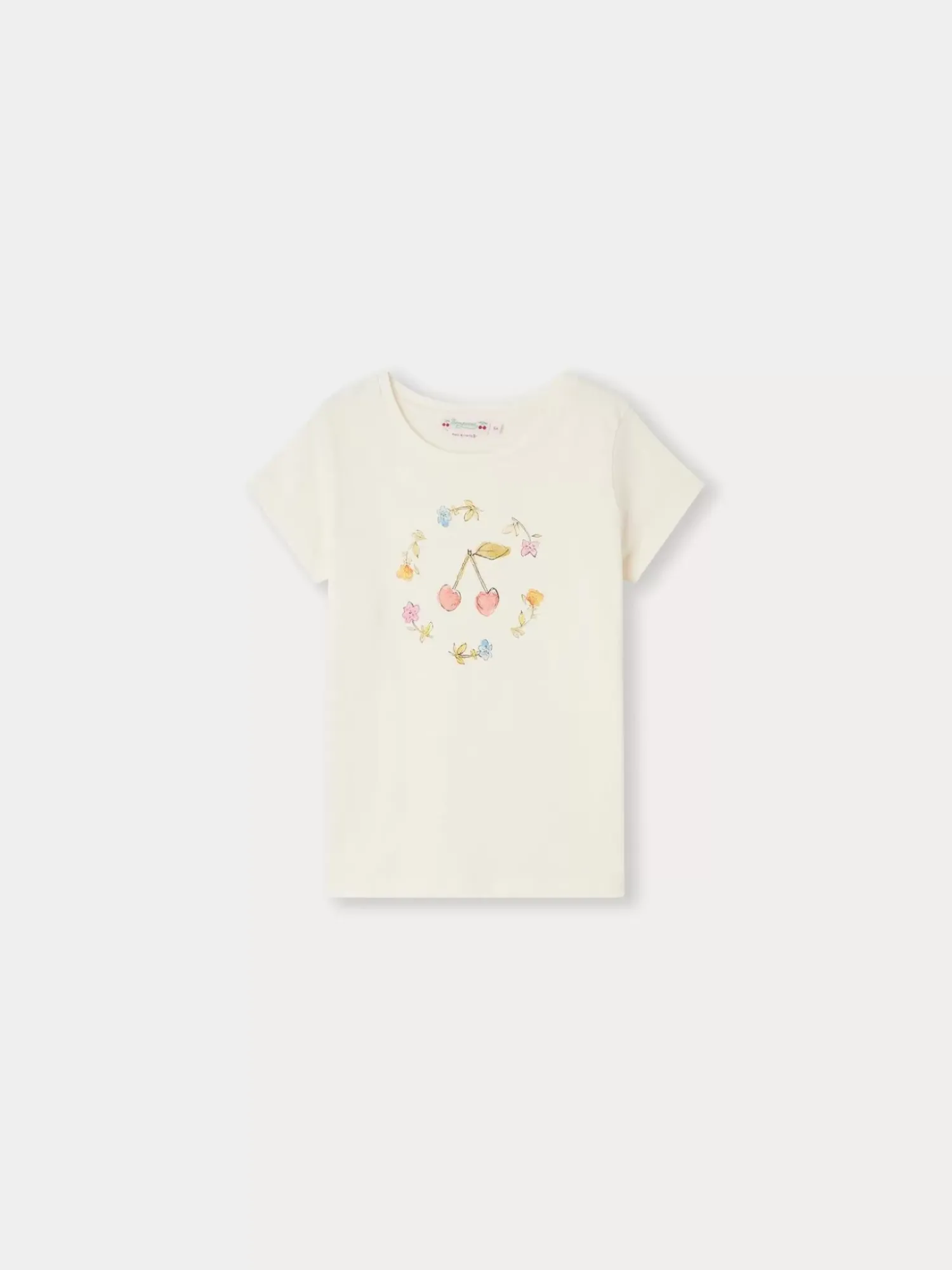 This Alcala T-Shirt For Girls Stands Out Thanks To The Romantic Silk-Screen Print On The Front Comprising Delicate Flowers And The Iconic Bonpoint Cherry. The Design Is Made From Organically Farmed Cotton.