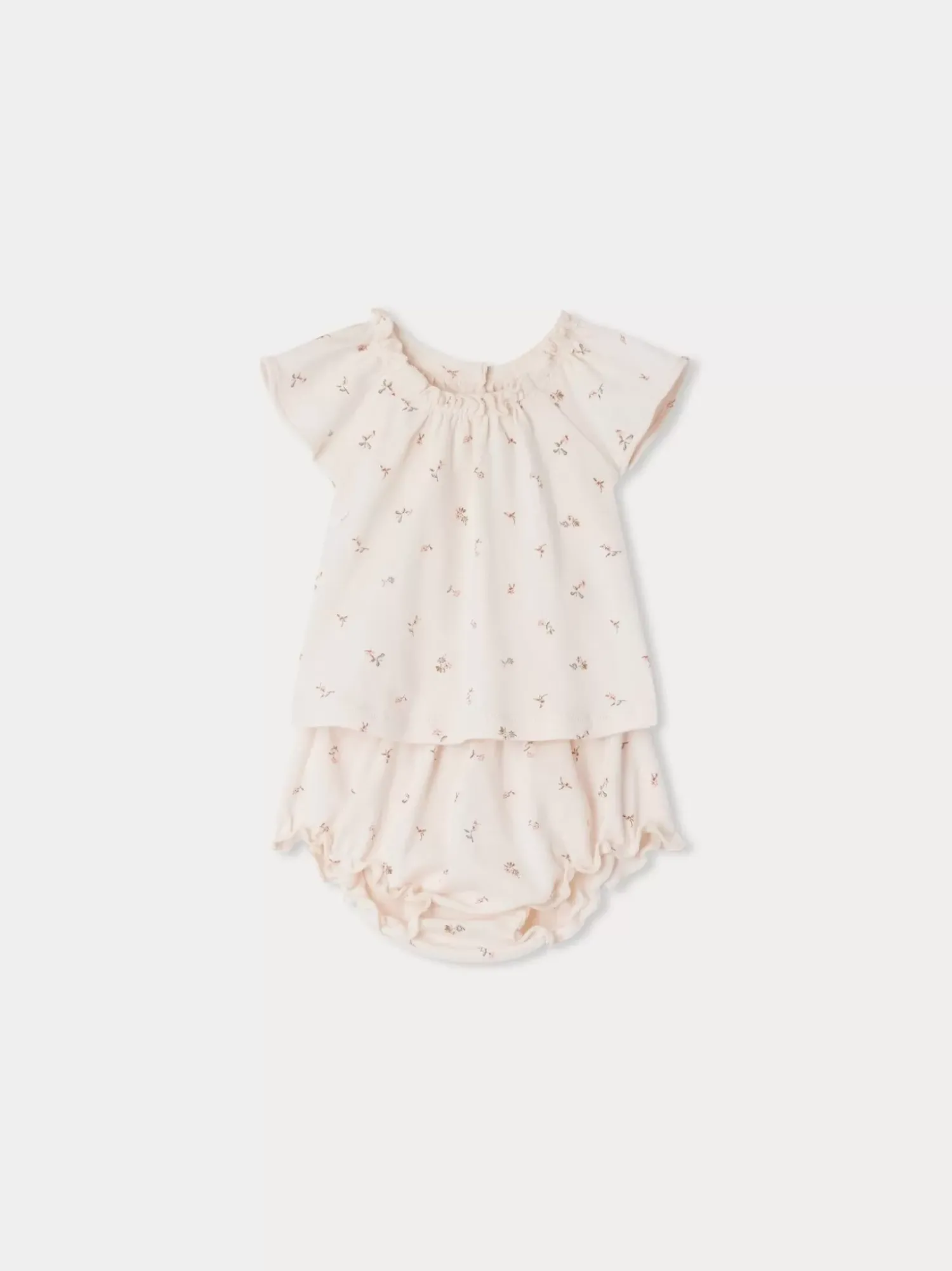 The Print On The Amissa Clothing Set For Babies Is Composed Of Gorgeous Little Flowers. This Garment Is Suitable From Birth And Combines A Short-Sleeved Flared Top With Matching Bloomers.