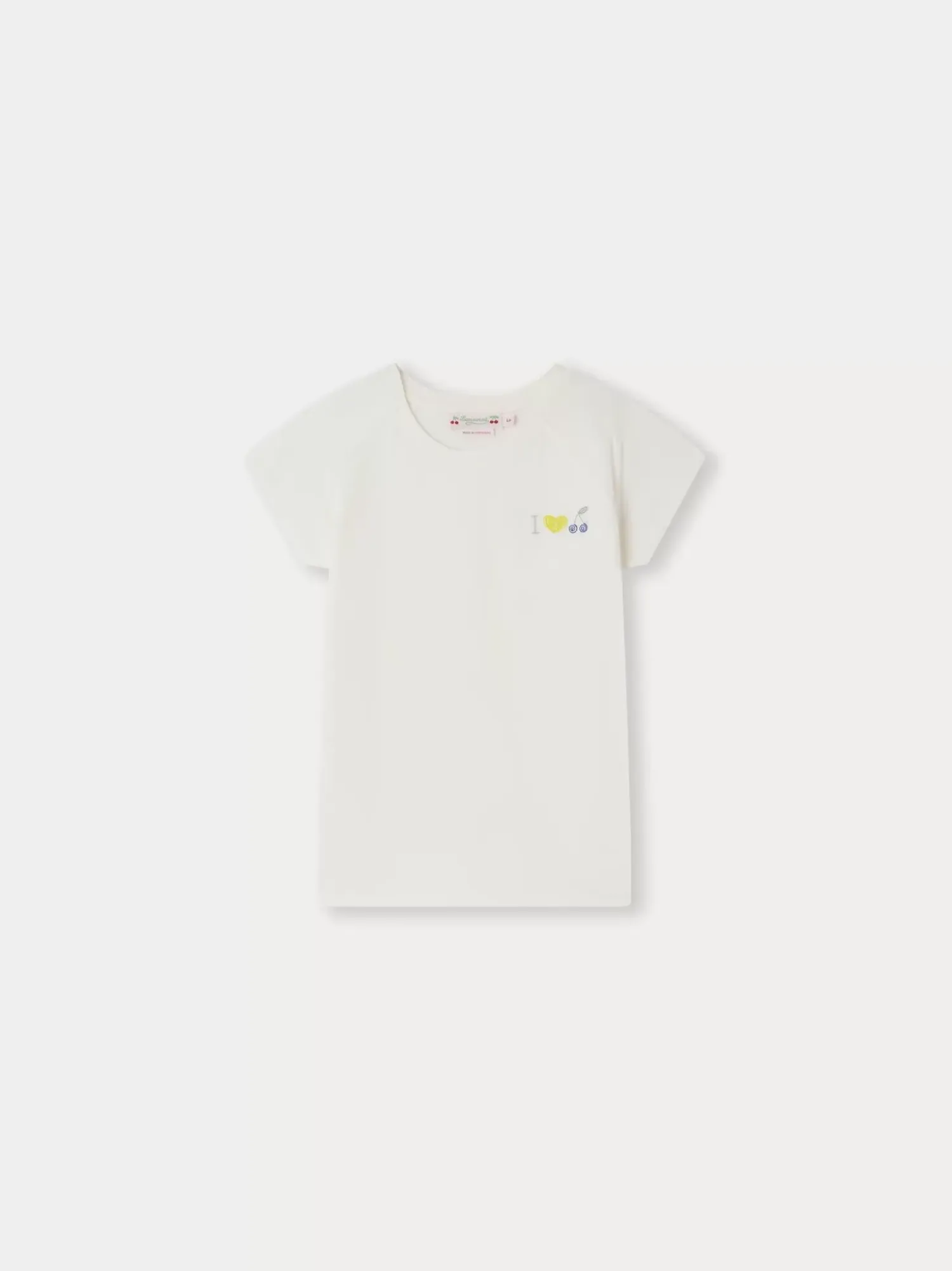 The Asmae T-Shirt For Girls Is Straight Cut With A Solid-Colored Base Creating An Elegant Understated Look. The Cheeky Stipple Stitch Design On The Chest Adds A Touch Of Color.