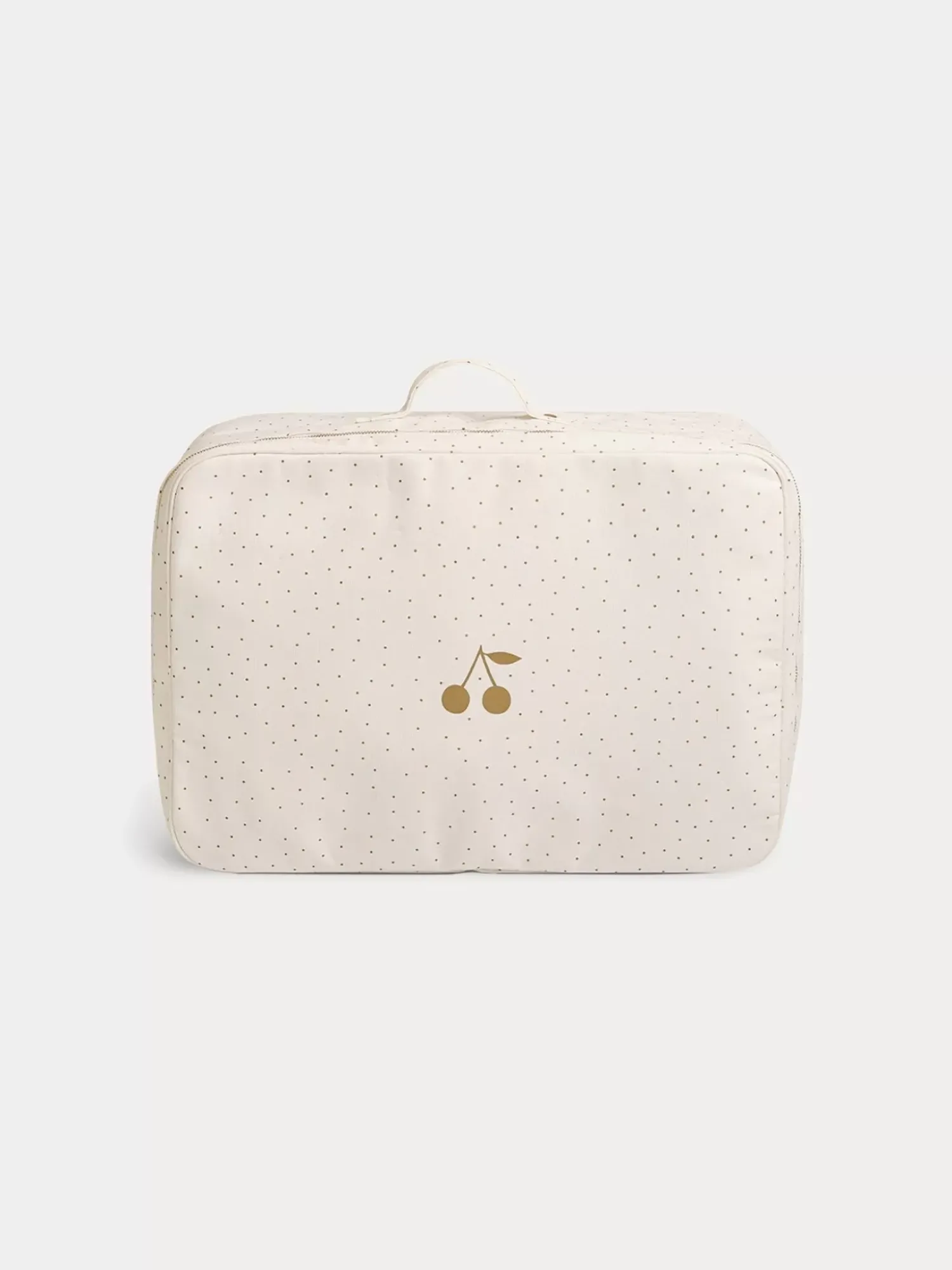 This Large Rectangular Suitcase Protects All Your Baby’S Essentials. The Coated Cotton Features Iridescent Dots And A Matching Cherry Printed On The Front.