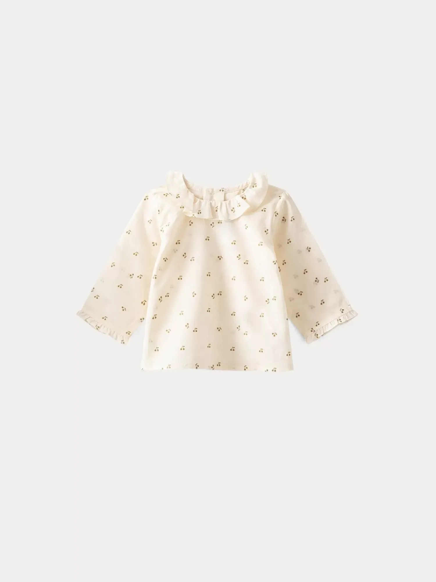 This Lightweight Voile Ganiti Blouse For Baby Is One Of The Iconic Designs Of The House Of Bonpoint. It Features The Iconic Bonpoint Cherry Print And An Elegant Ruffled Collar.