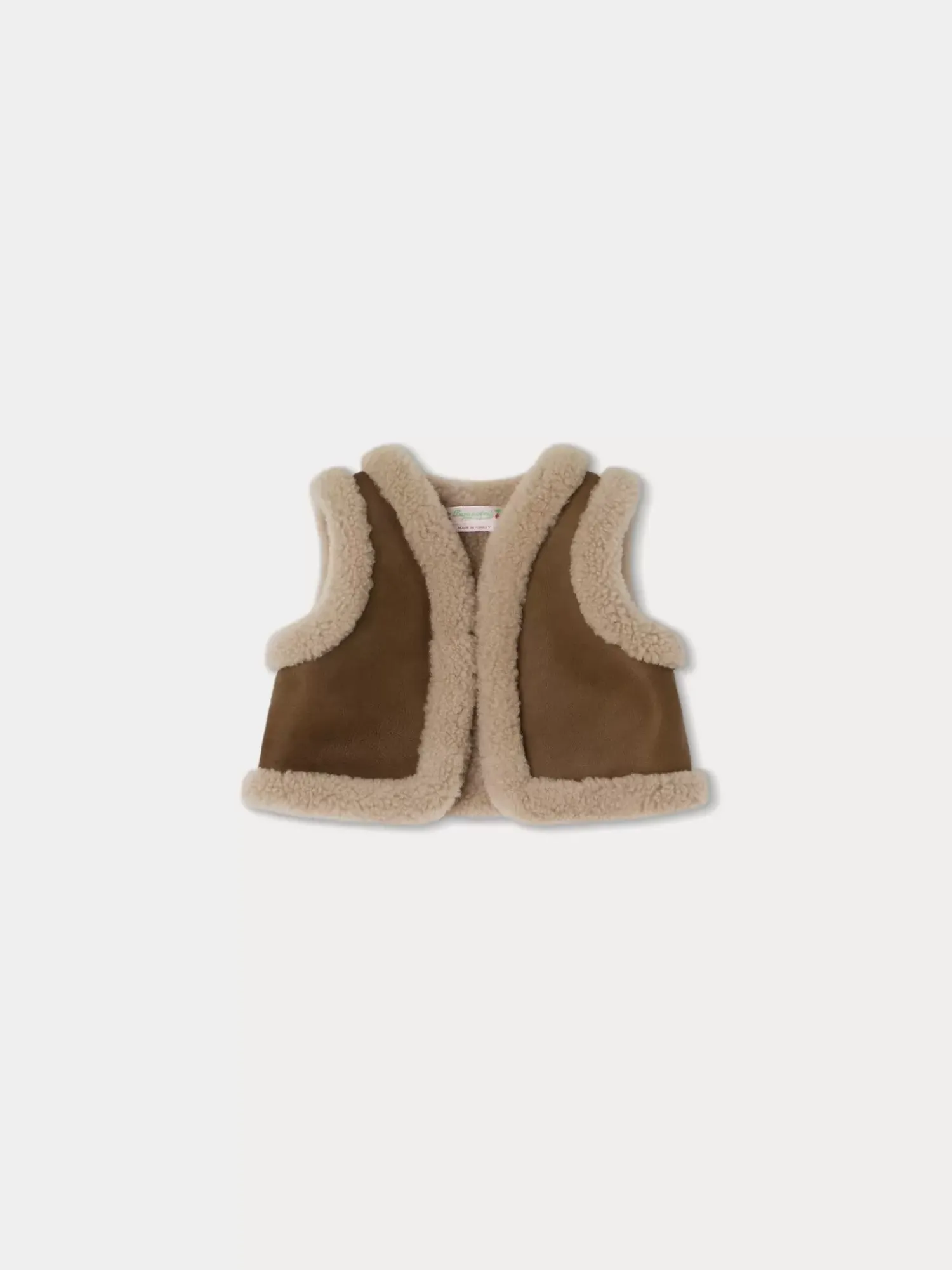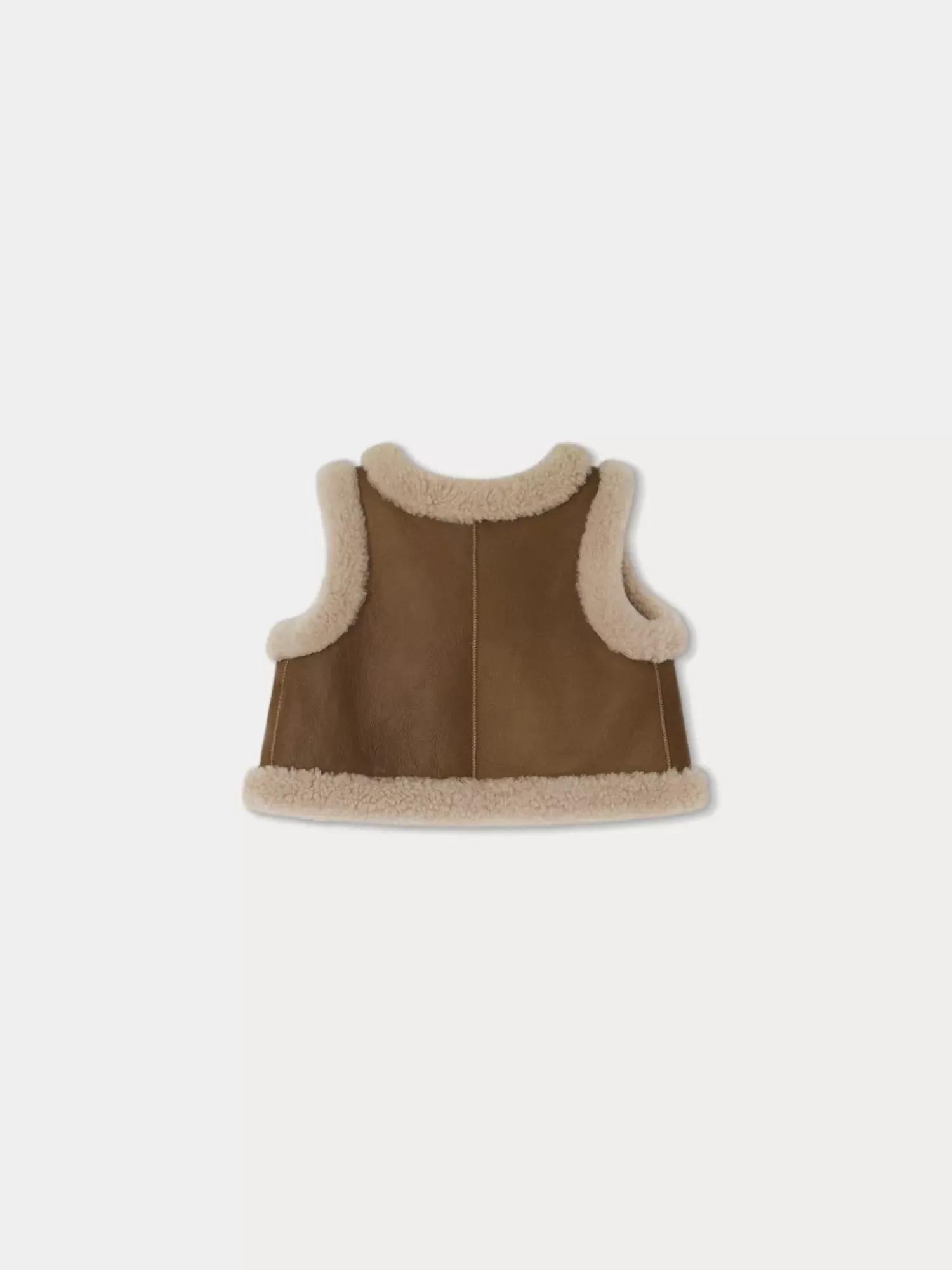 The Barra Babies’ Cardigan Features Shearling Trim Inspired By Traditional Shepherds’ Jackets. The Grained Leather Comes From A Tannery Meeting The Best Environmental Practices.