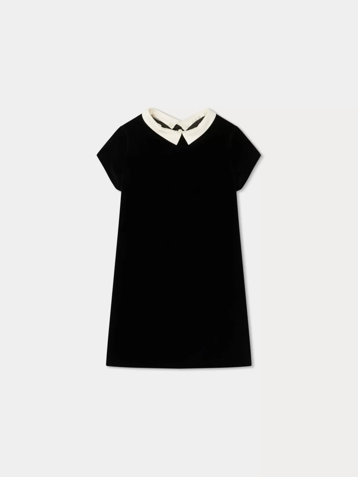 The Begonia Dress For Girls Is Made From Ultra-Soft Velvet And Is The Perfect Choice For A Special Occasion. This Plain Garment Is Enhanced By A Contrasting, Pointed Satin Collar That Can Be Removed Thanks To Its Buttons.