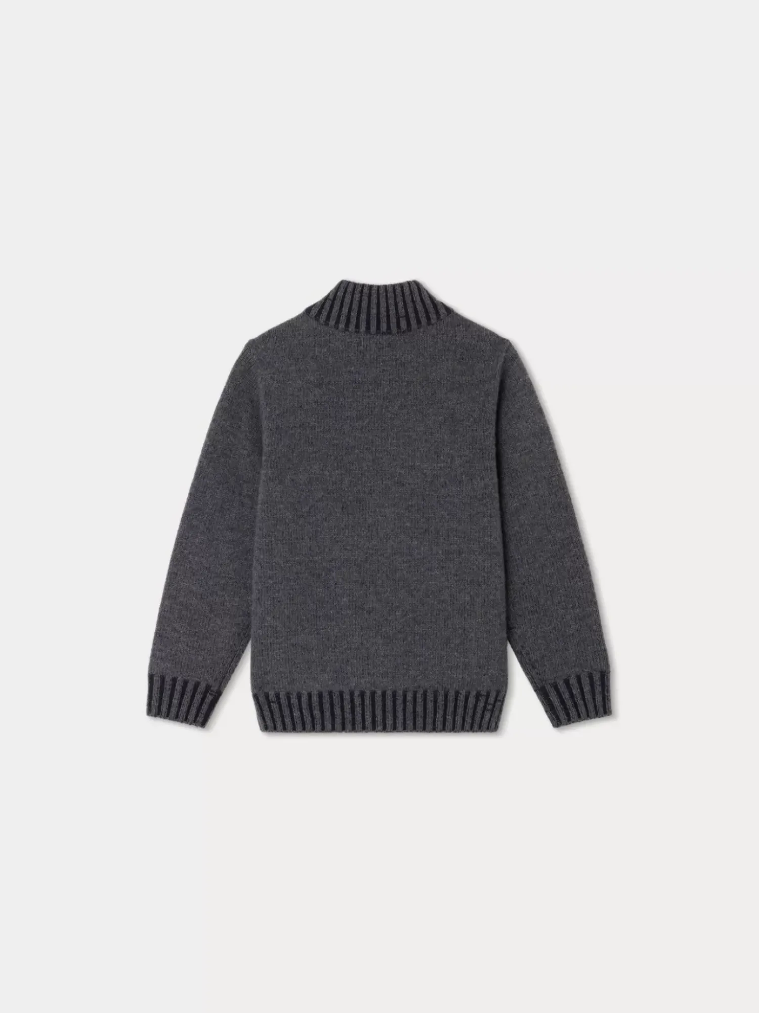 This Berny Cardigan For Boys Offers A New Take On The Classic Knitted Cardigan With Its Zipper Down The Front. The Ribbed Hem, Cuffs, And Stand-Up Collar Feature Contrasting Accents.