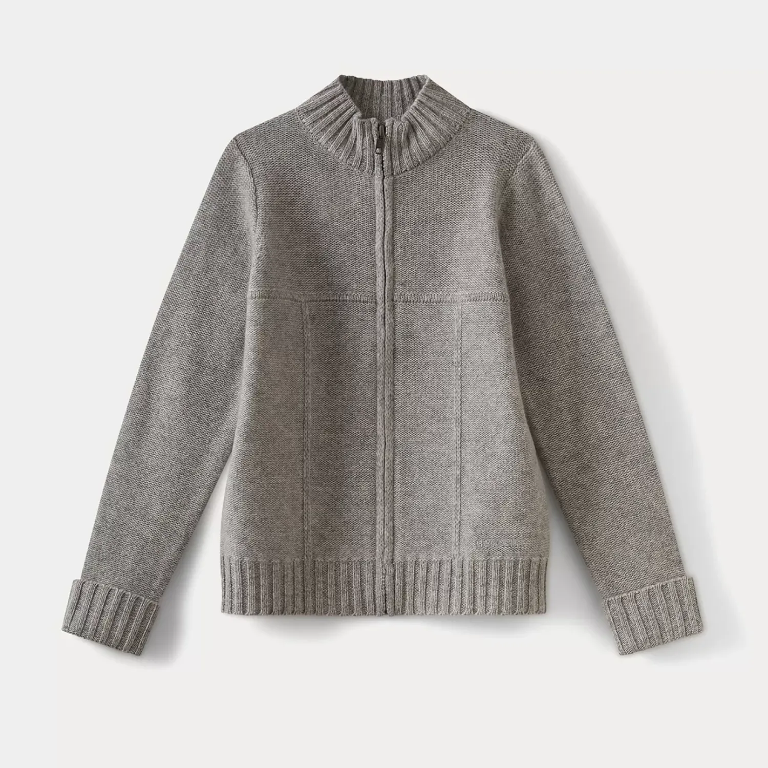 This Cardigan Will Keep Boys Warm With Its Chunky Ribbed Stand-Up Collar. It Is Made Entirely Of Cashmere And Features Novelty Knit Patterns On The Front.