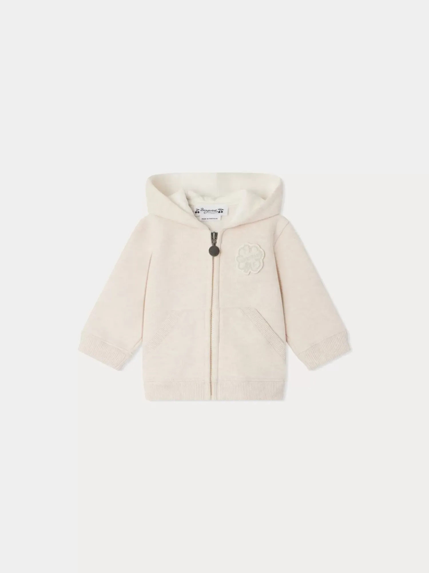 Made From Warm And Soft Organic Cotton, This Bud Sweatshirt For Baby Comes With A Zipper And Hood. A Delightful Cloverleaf Adorns The Chest.