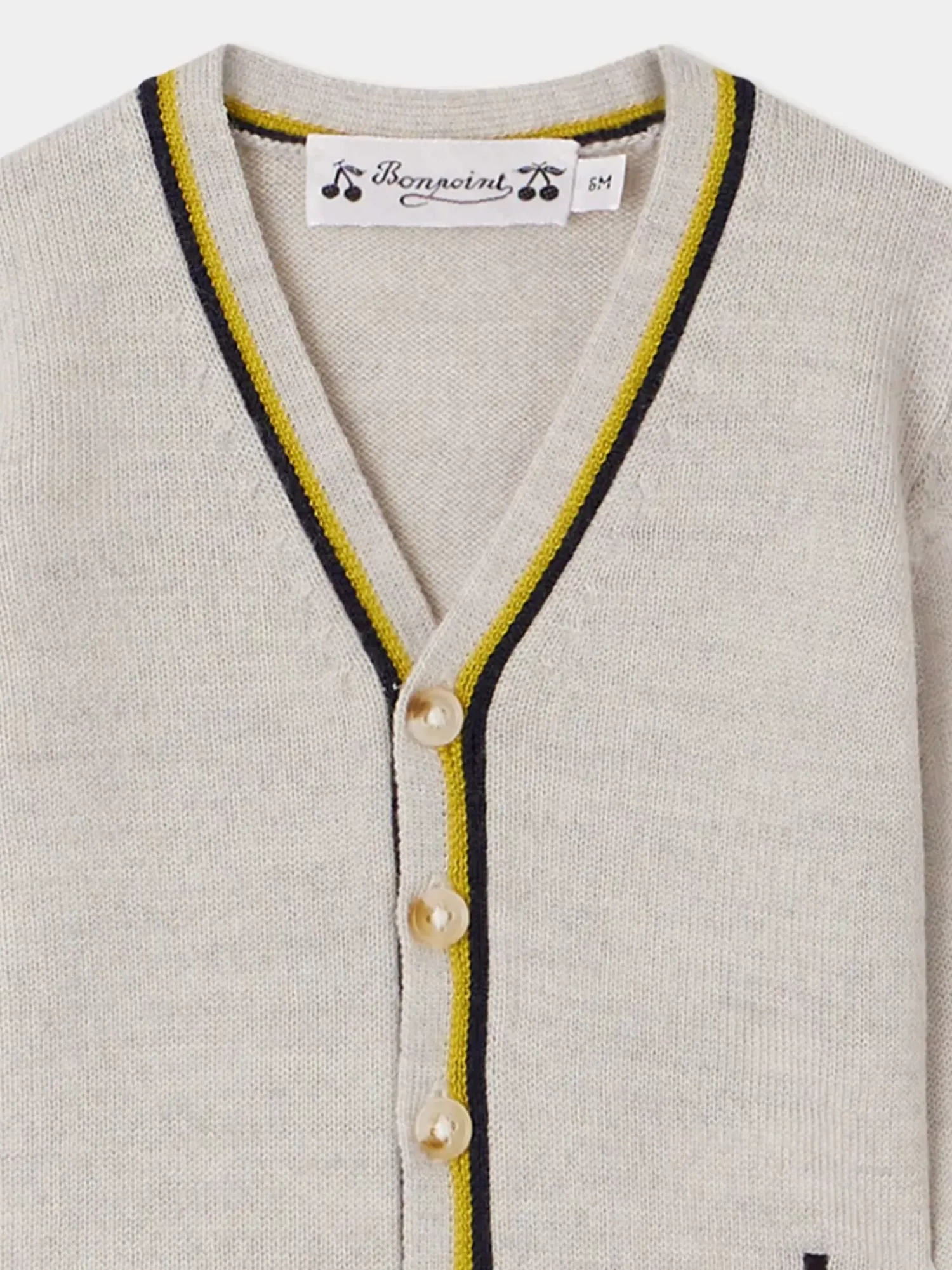 Le Cardigan Teotim Pour Bébé Est Confectionné En Laine Certifiée, Assurant Le Bien-Être Animal. Ses Délicates Rayures Colorées Ajoutent Une Touche Rétro, Tandis Qu’Un Logo Bonpoint Est Brodé À L’Avant.