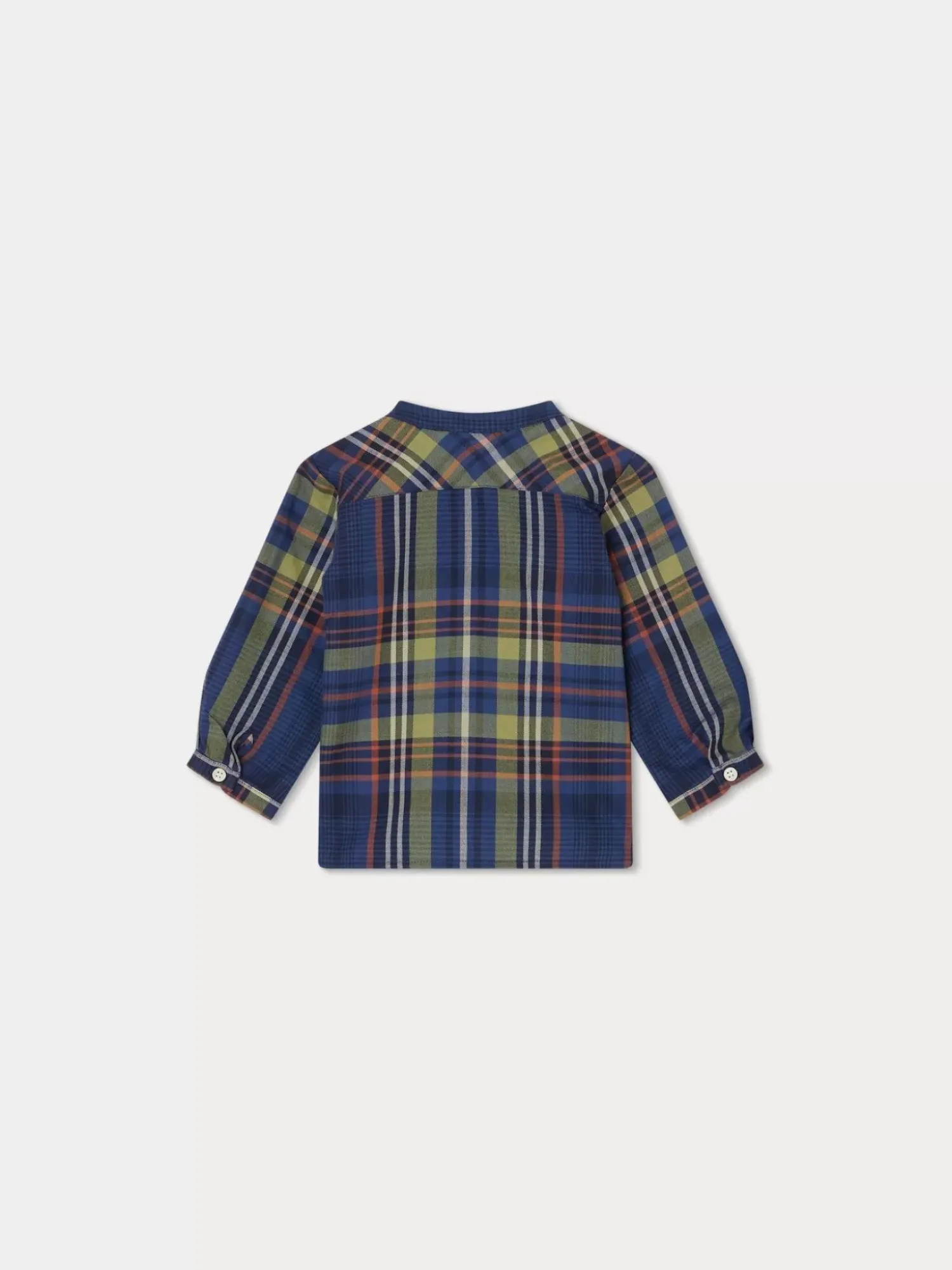 Cette Chemise Sans Col Polisson Pour Bébé Séduit Par Son Motif À Carreaux Multicolore. Les Découpes Aux Épaules Et Dans Le Haut Du Dos Structurent La Pièce.