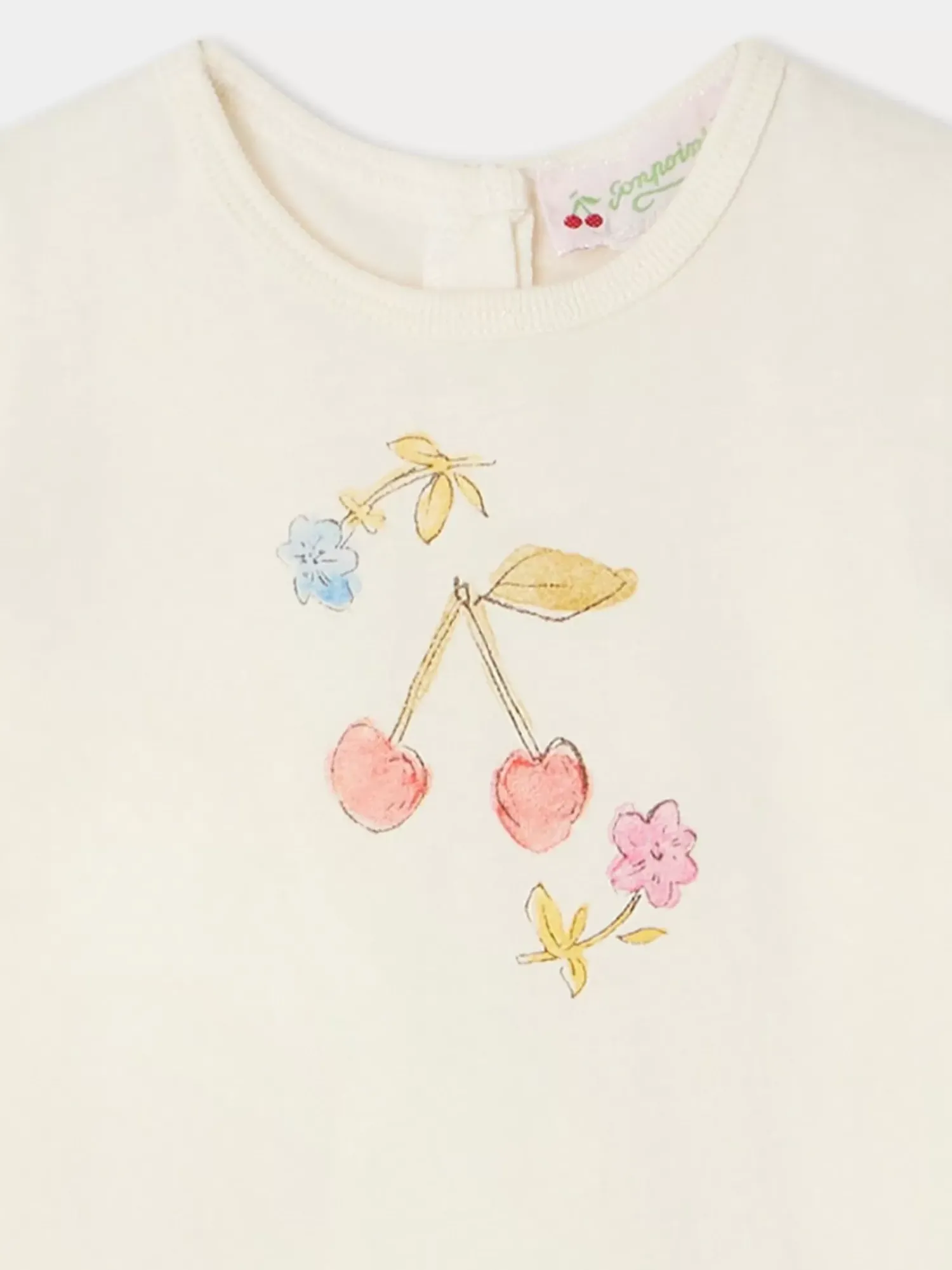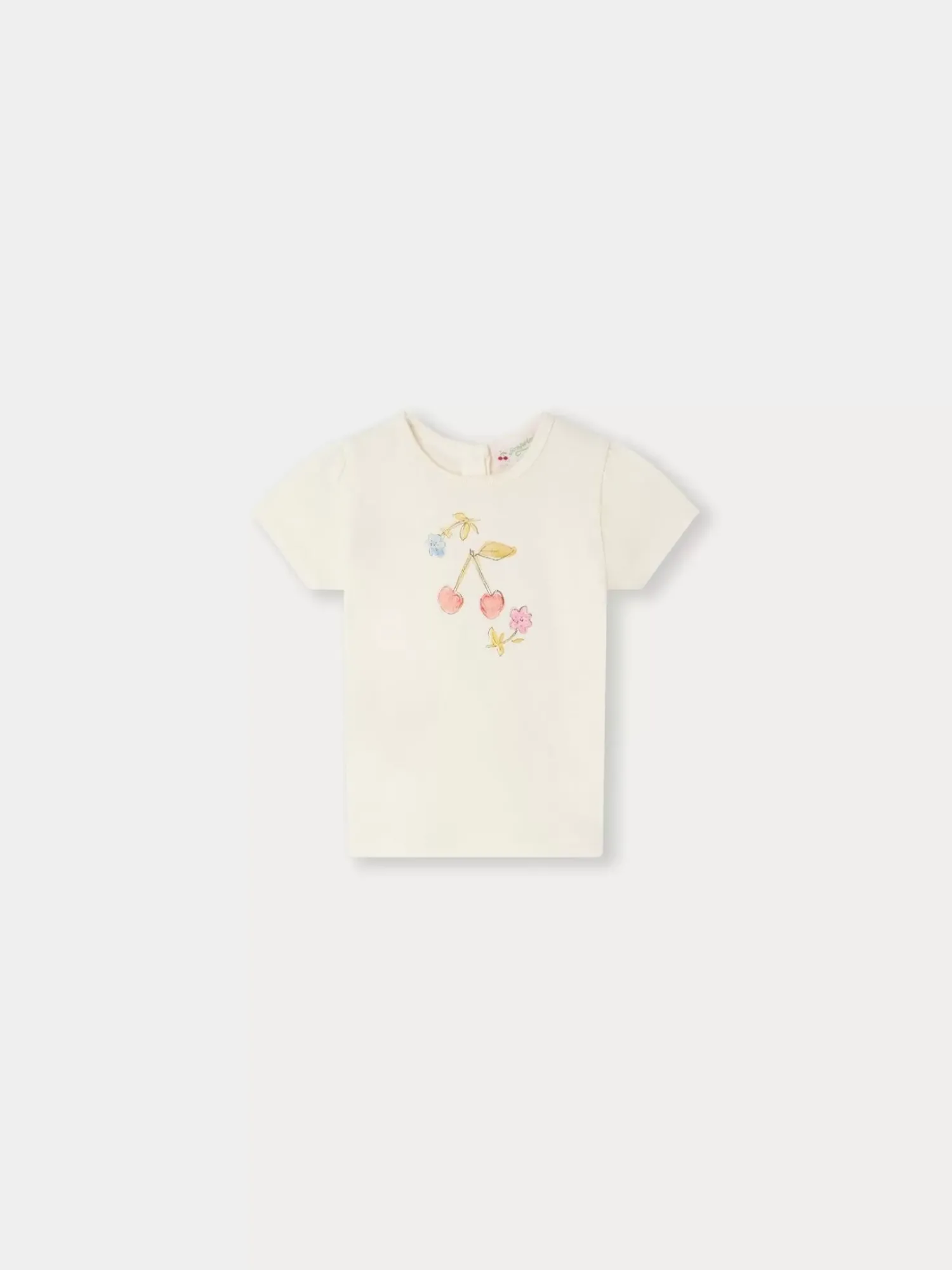 This Cira T-Shirt For Babies Is Enhanced With An Eye-Catching, Watercolor-Style ‘Cerise Tutti Frutti’ Print On The Front. This Garment Is Made From Organic Cotton.