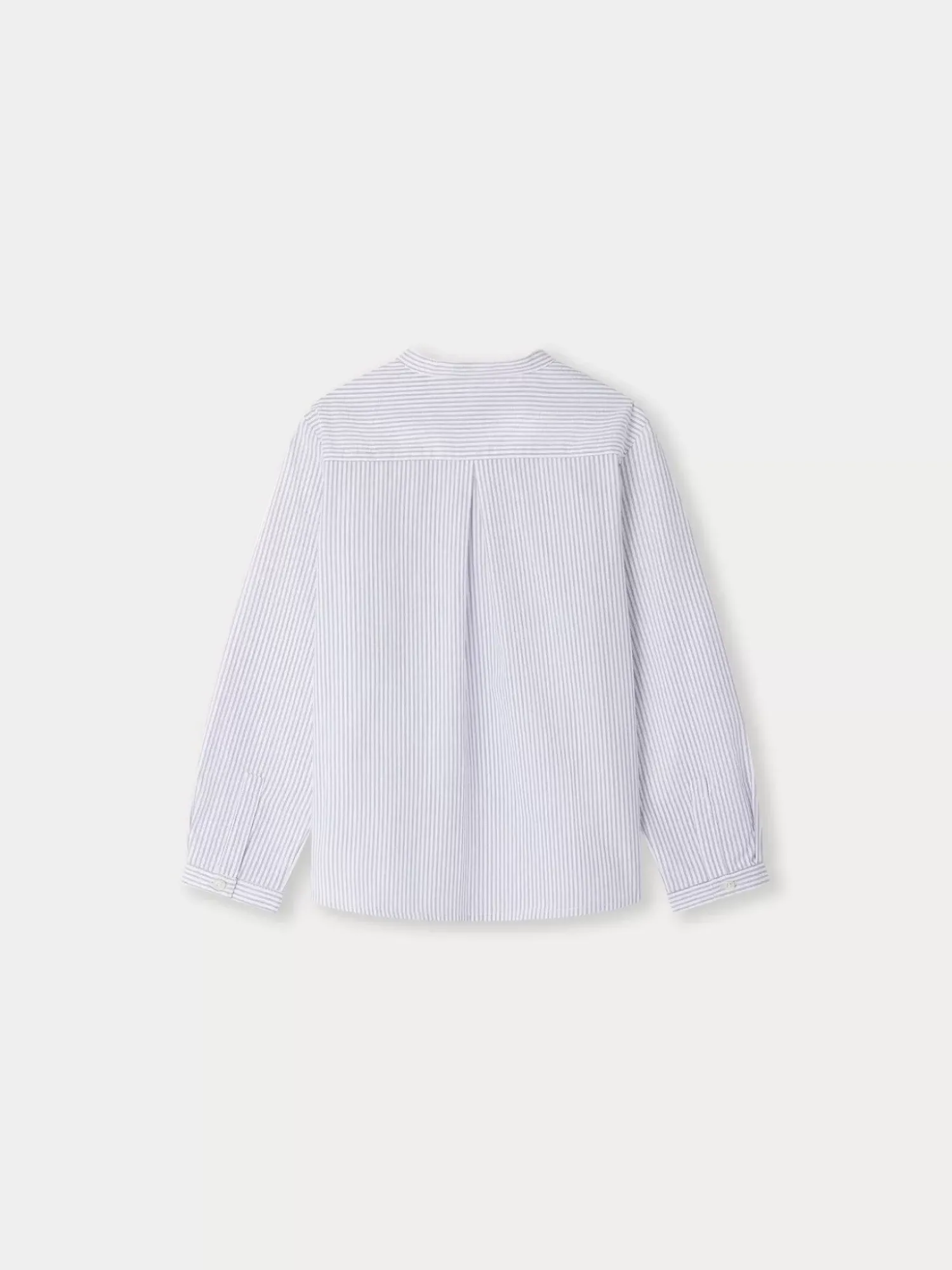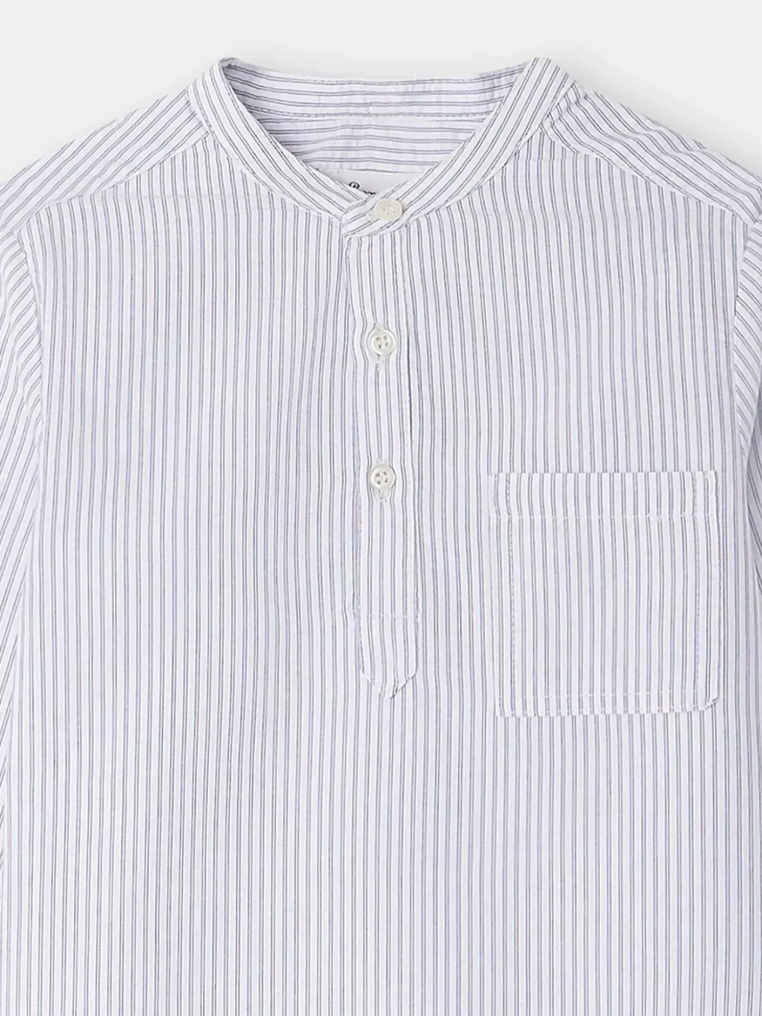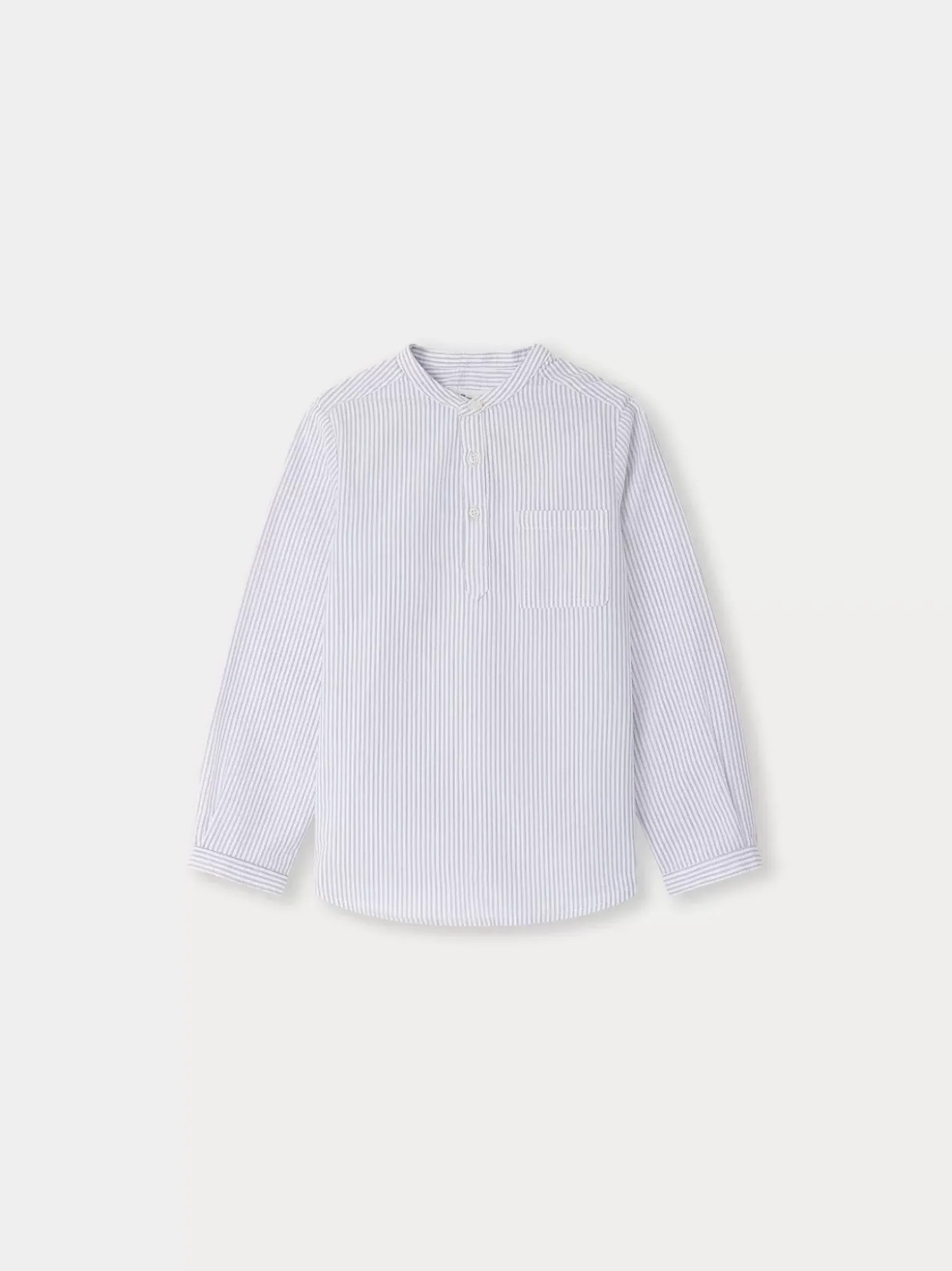 The Claude Shirt For Boys Is An Eye-Catching Design Thanks To Its Elegant, Cotton Waffle Fabric And Thin Vertical Stripes. Its Tunisian Collar Fastens At The Front With Three Buttons.