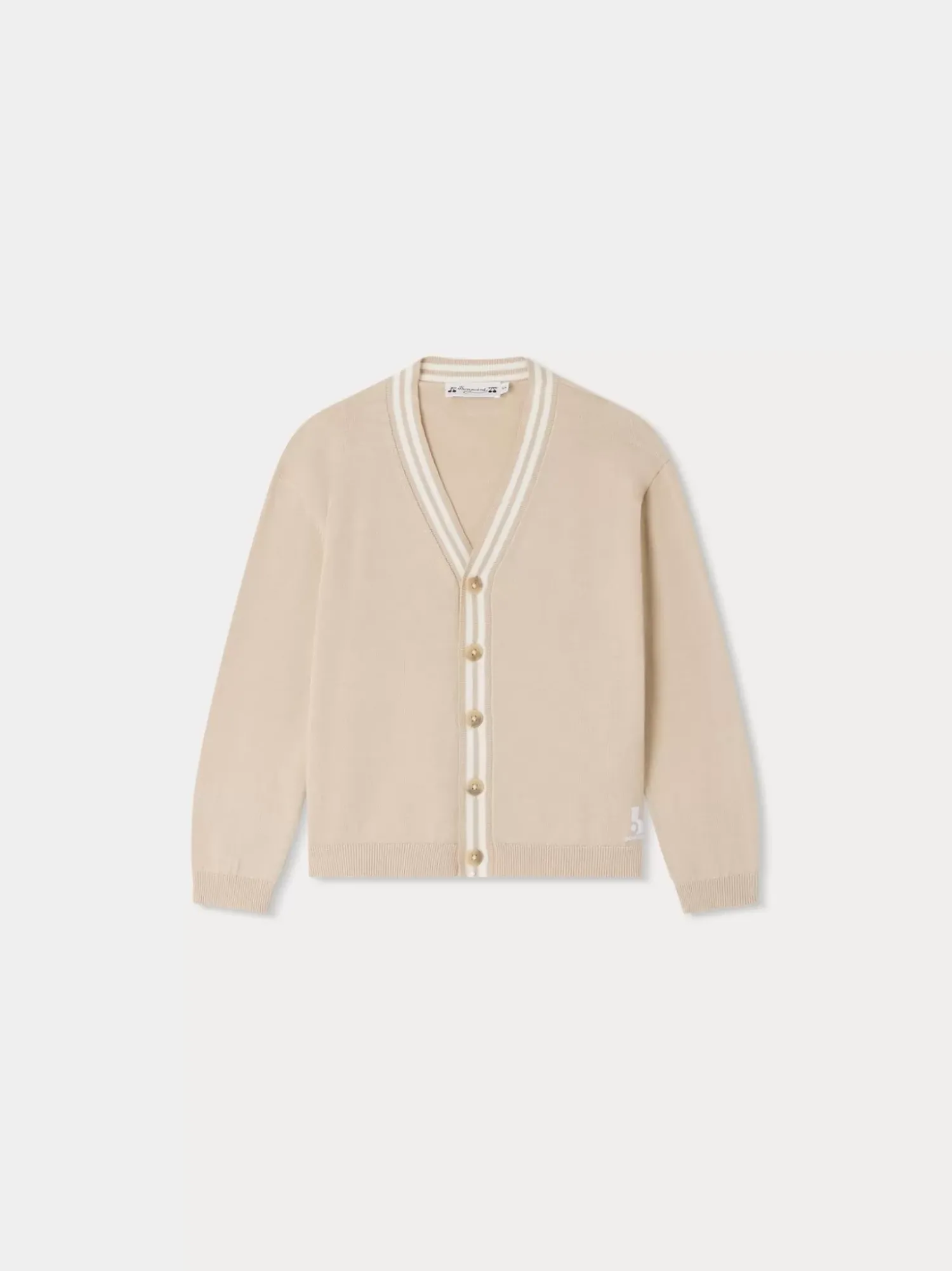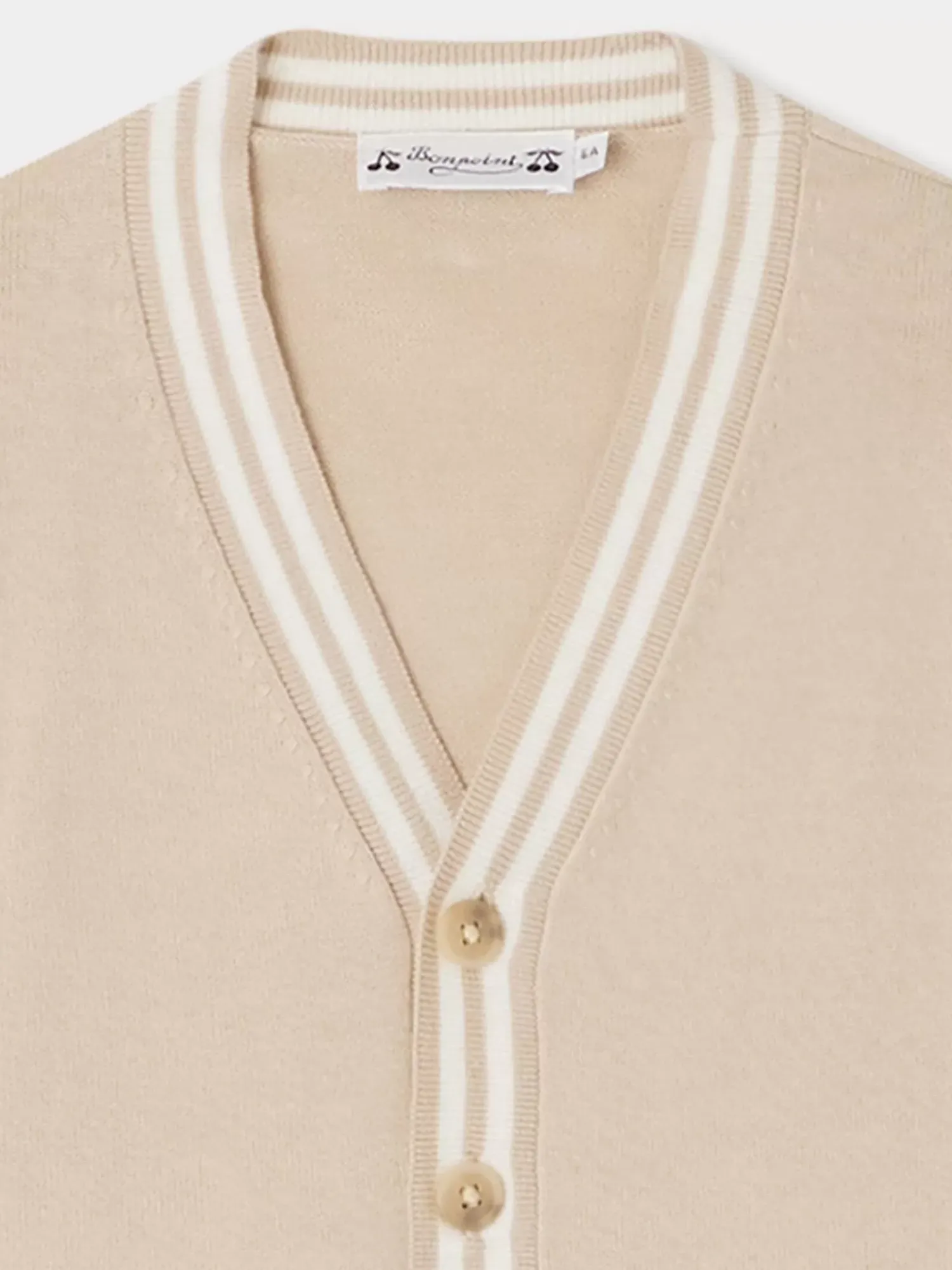 This Elegant Corbin Cardigan For Boys Features A V-Neck And Contrasting Stripe Trim. It’S Made From Certified Organic Cotton.