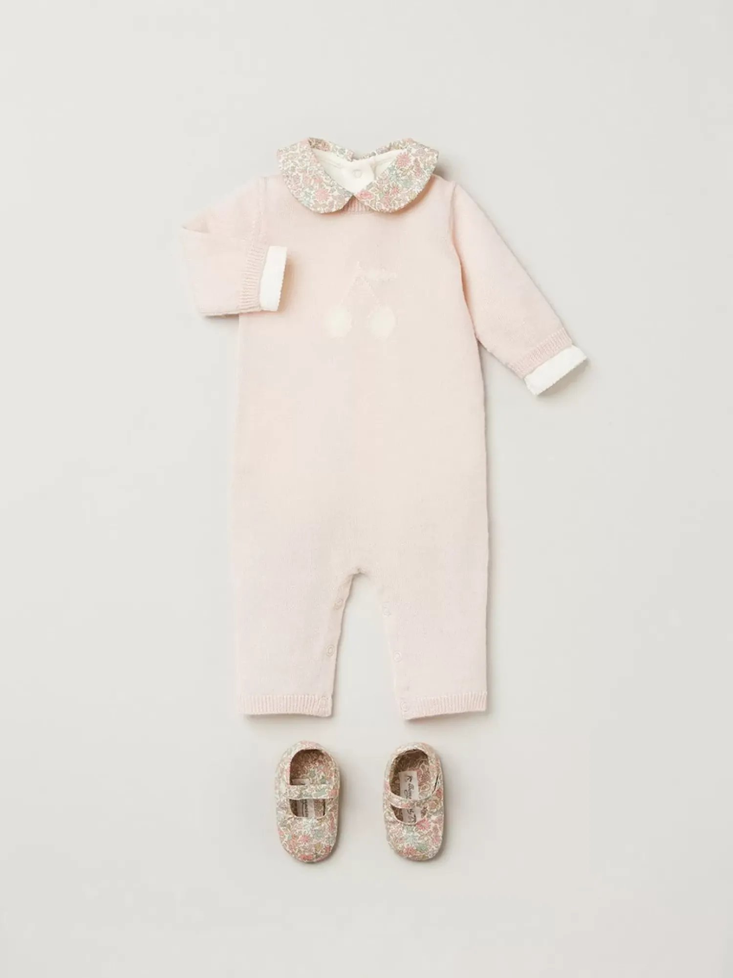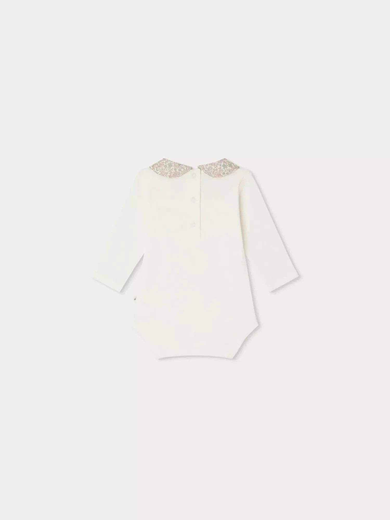 This Cygne Onesie For Baby Features A Lovely Contrasting Collar With A Floral Print. Made From Certified Organic Cotton, It Has A Subtle Snap-Button Fastening At The Back For Easy Dressing.