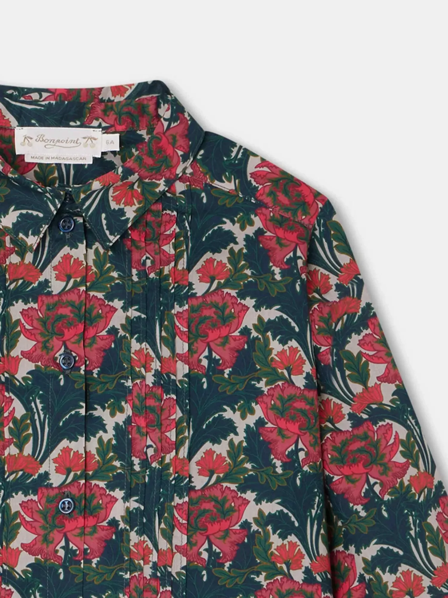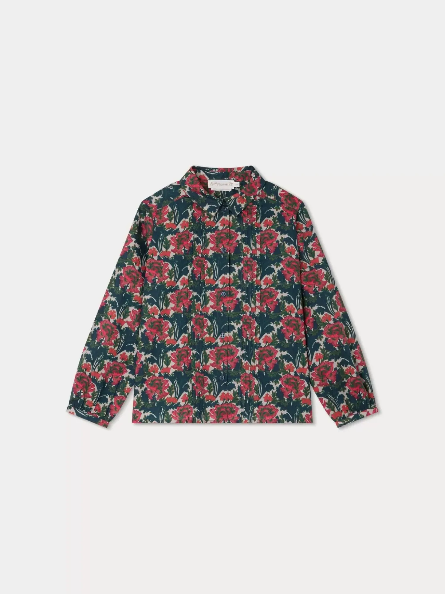 This Elegant Daniela Blouse For Girls Is Made From Liberty Fabric Featuring A Large Floral Pattern With Pintuck Pleats At The Front. The Long, Straight Sleeves Have Fitted Cuffs.