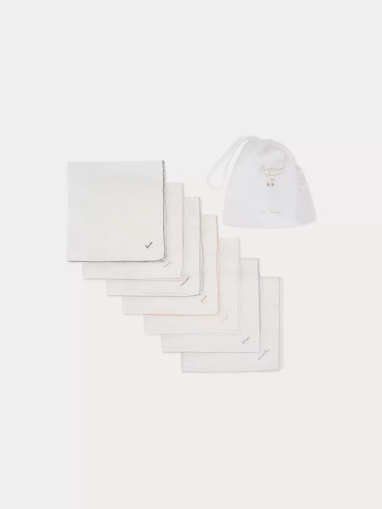 This Langes Set Of Security Blankets Is An Iconic Bonpoint Design For Baby. These Solid-Colored Soft Cotton Blankets Are Embroidered With The Day Of The Week In A Contrasting Color.