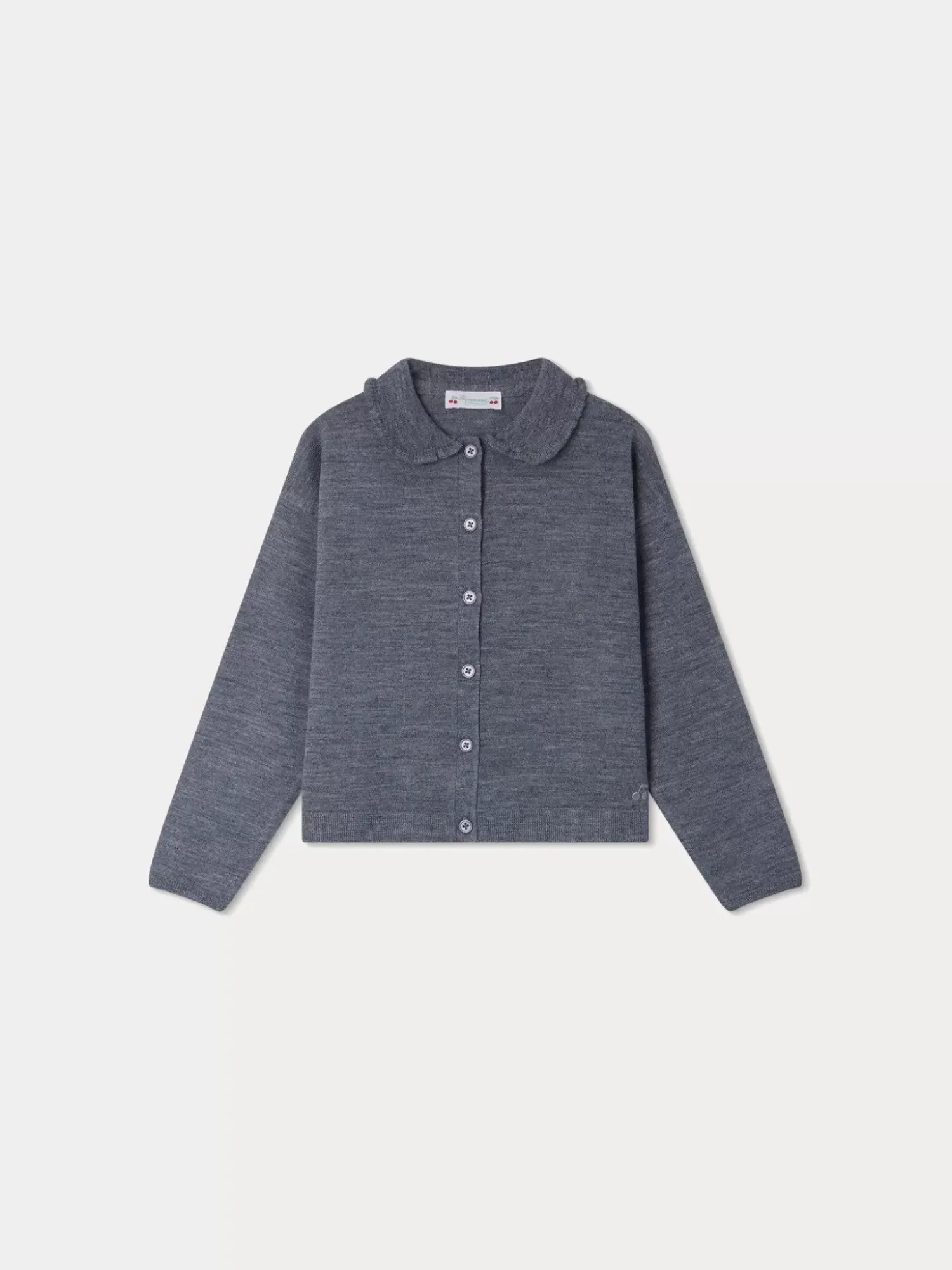 This Stylish Diana Cardigan For Girls Features An Elegant Rounded Lapel Collar With A Ruffle Finish. A Tone-On-Tone Cherry Is Delicately Embroidered At The Hem.