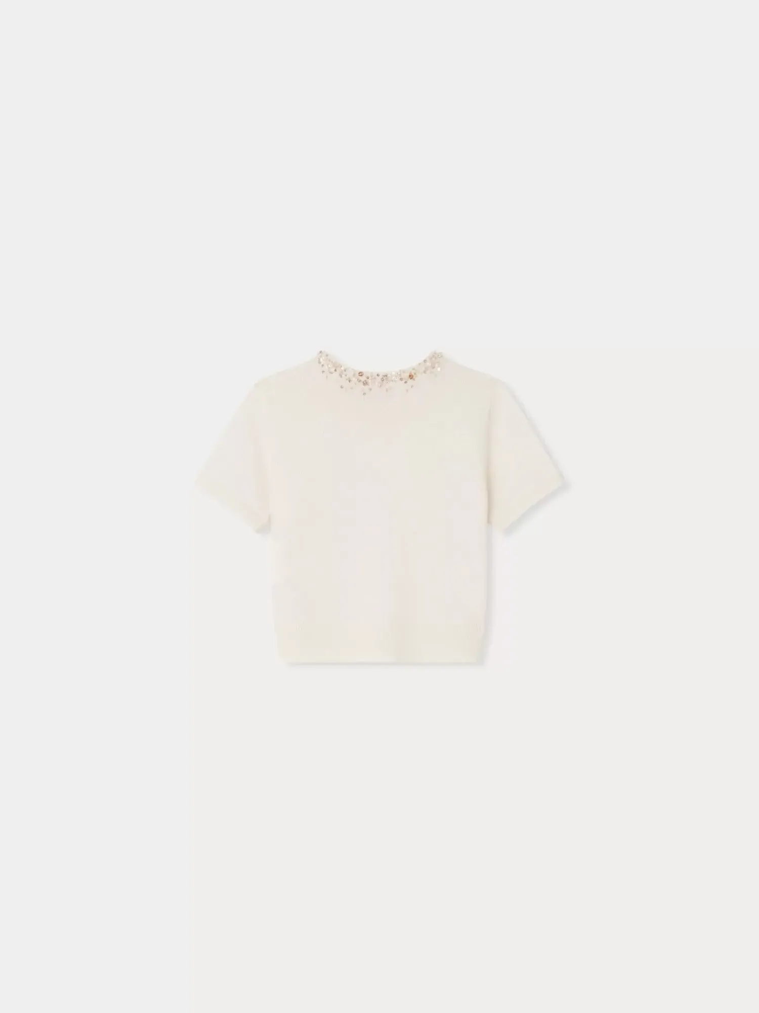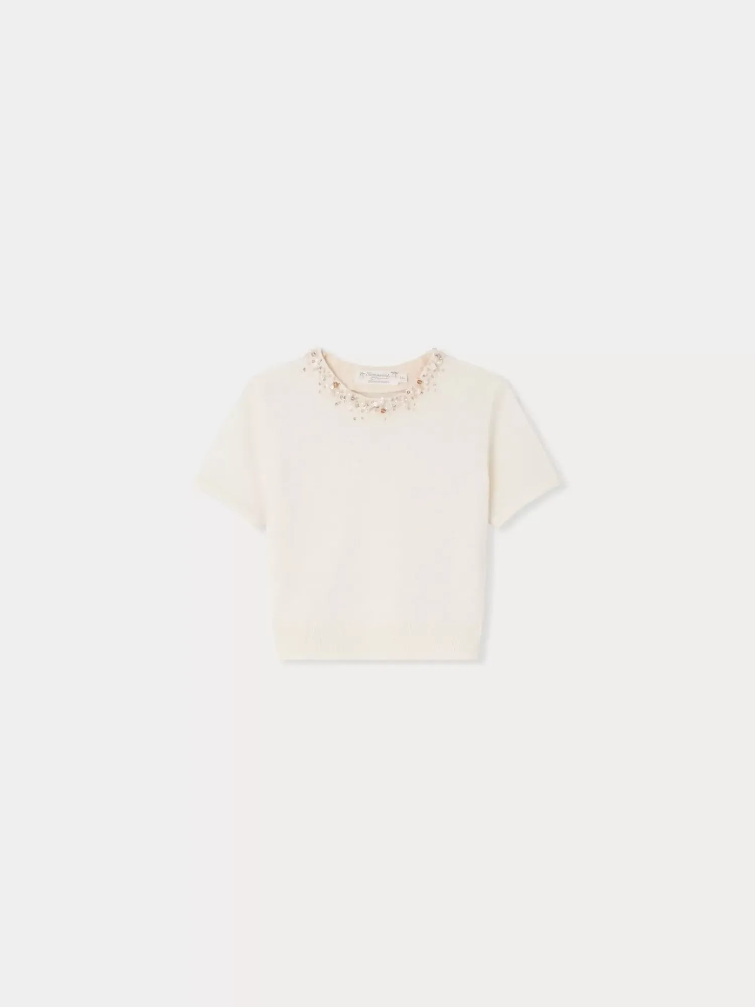 Little Girls Love This Diaphane Sweater With Beads And Rhinestones Embroidered By Hand On The Collar. It Is Made Of Cashmere From Certified Sources That Guarantee Animal Welfare.