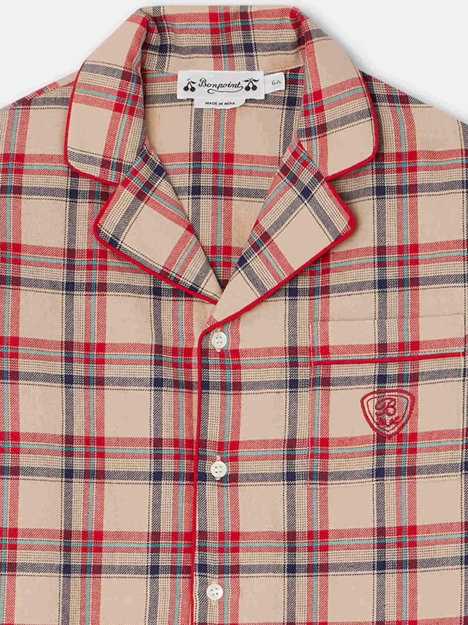 These Must-Have Dormeur Pajamas For Boys Feature A Checked Pattern And Meticulous Detailing. They Come In A Matching Drawstring Bag.