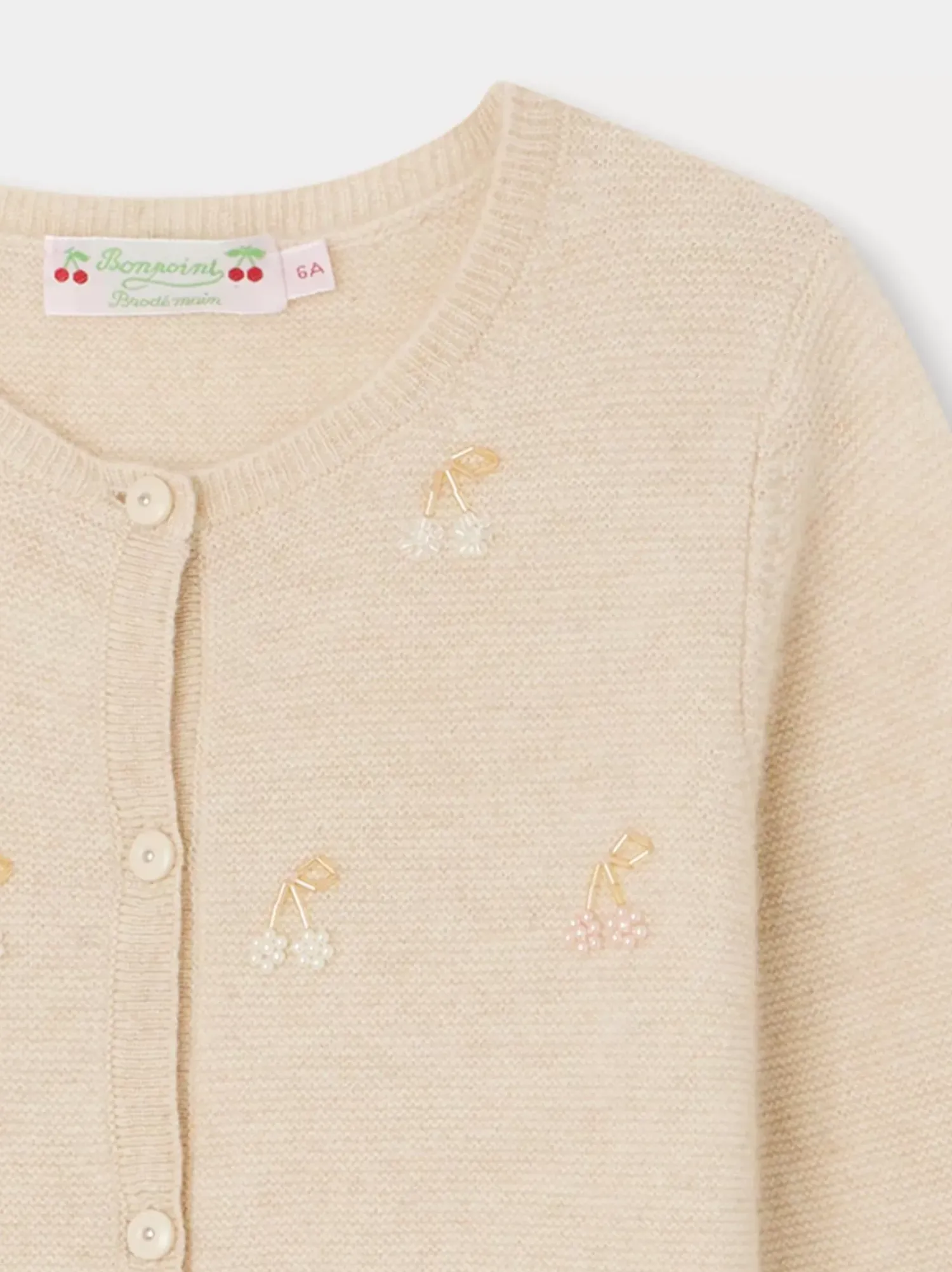 This Dounia Cardigan For Girls Features Adorable, Hand-Embroidered Beaded Cherries On The Front, Making It Perfect For A Special Occasion. It Has A Tone-On-Tone Button Fastening.