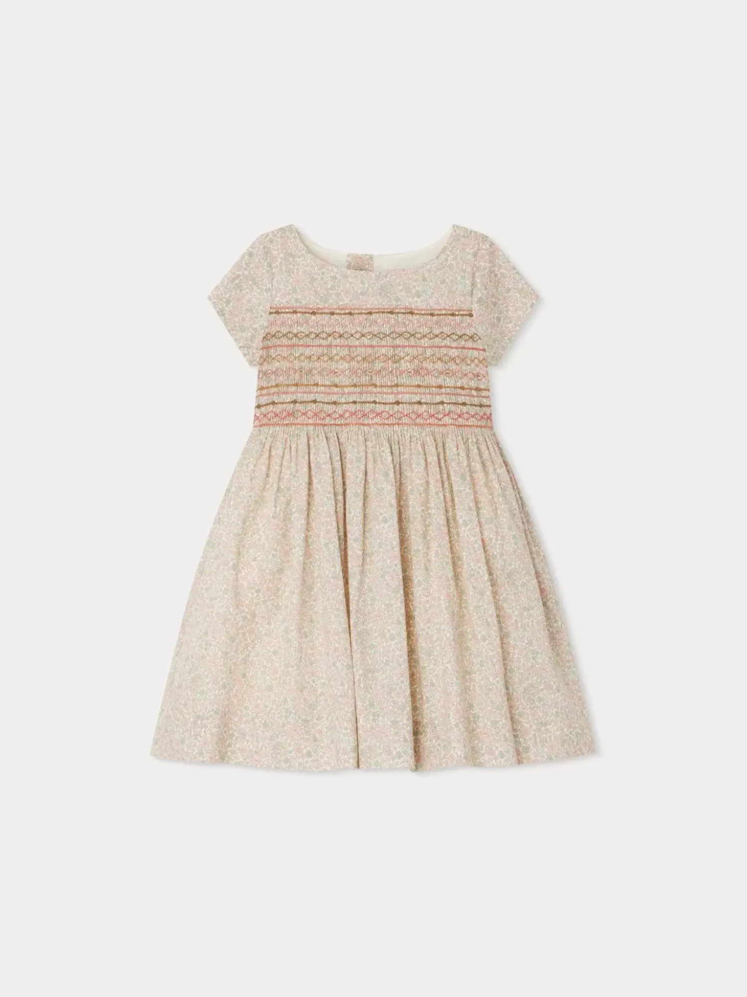 A House Must-Have, This Duchesse Dress For Girls Features Hand-Embroidered Smocking In The Front And Delicate Gathering At The Waist. Its Liberty Fabric Gives It A Fresh Look.