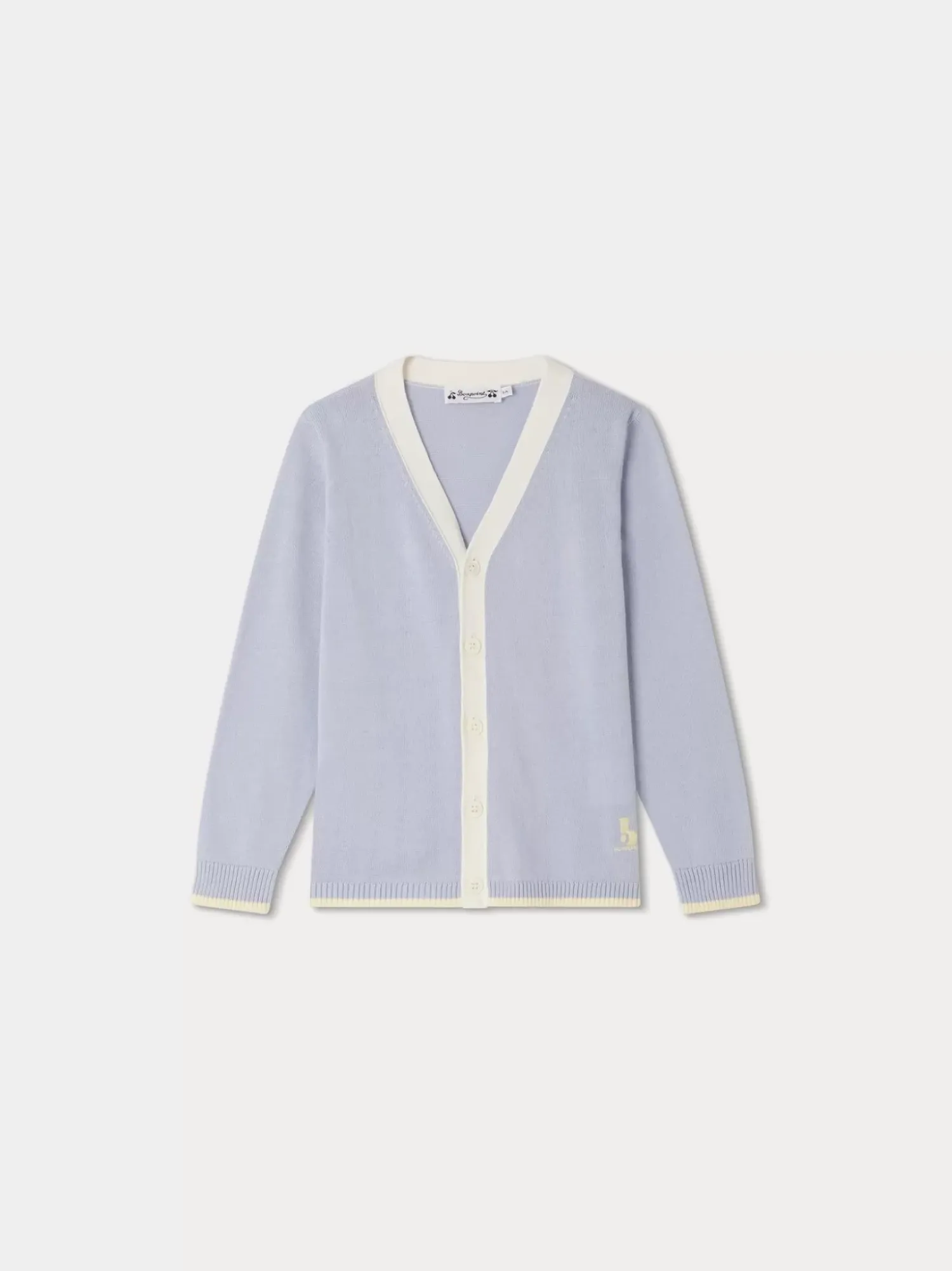 This Fabiano Boys’ Cardigan Features An Elegant V Neck And Is Made Of Two-Tone Organic Cotton Material. Bonpoint Logo Embroidery Decorates The Front.