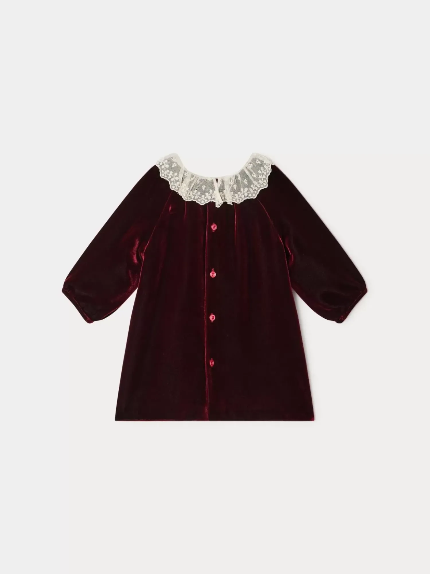 This Flavili Baby Dress Is The Height Of Elegance With Its Embroidered Cotton Tulle Collar. With A Back Buttoned Fastening, It Is Easy To Put On Even The Youngest Babies.
