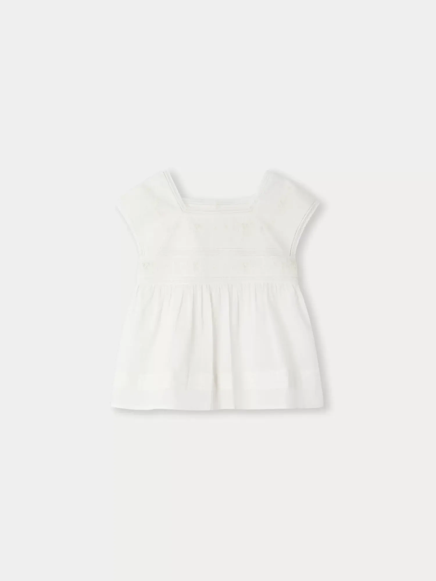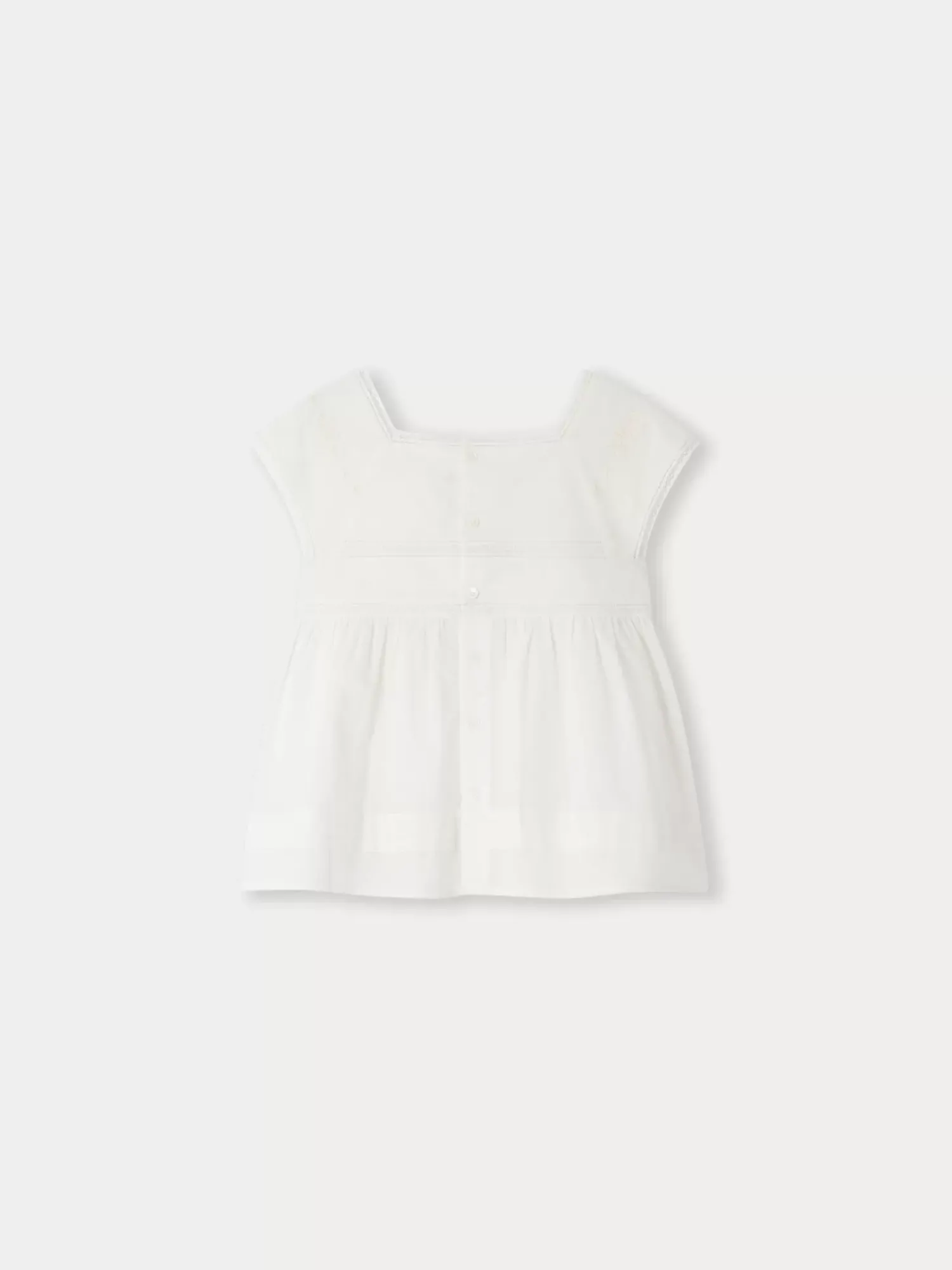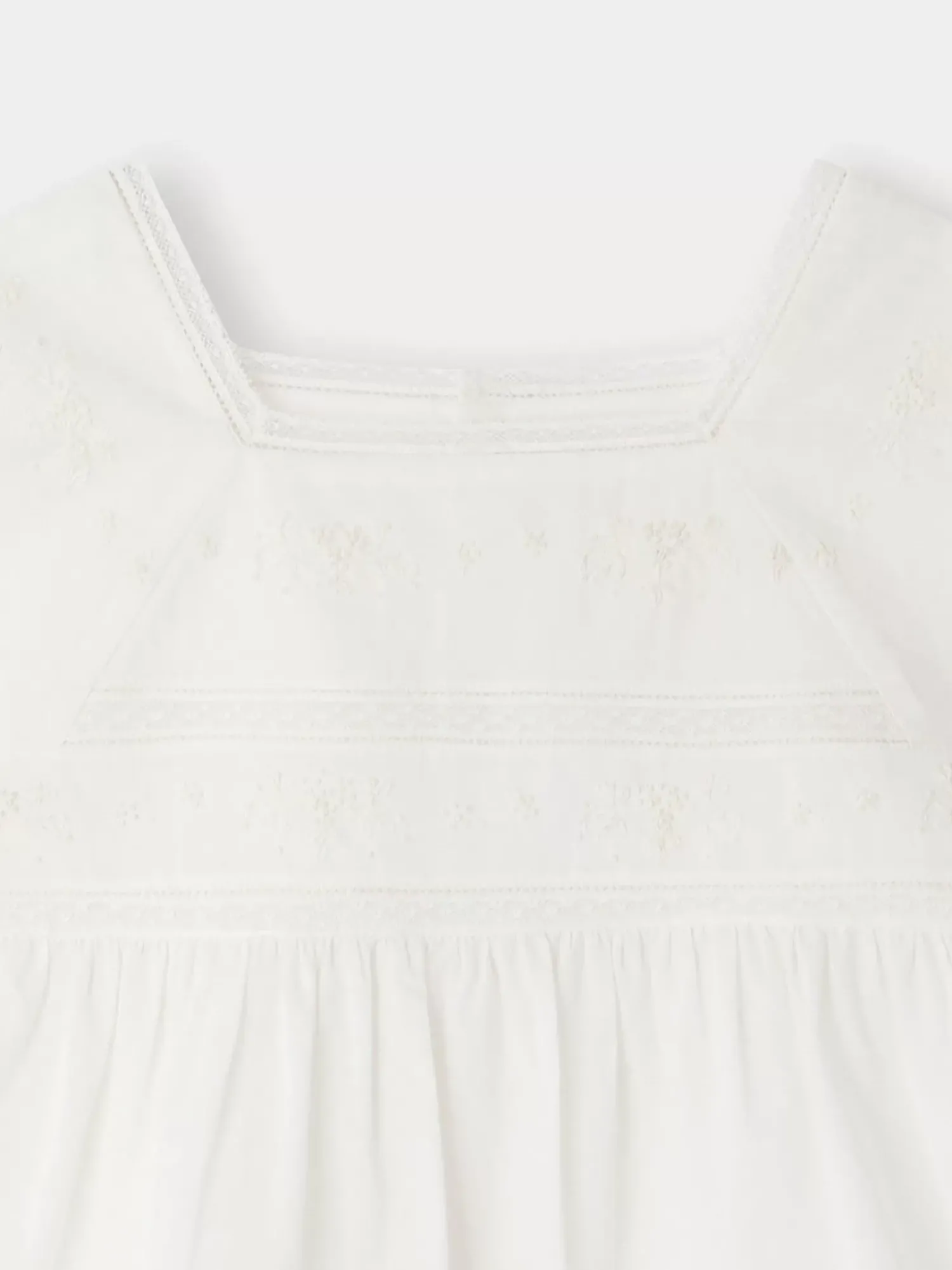 This Flower Girls’ Blouse Features Lovely Calais Lace Inserts On The Chest. It Is Made From Certified Organic Cotton Voile, And Styled With A Flared Cut.