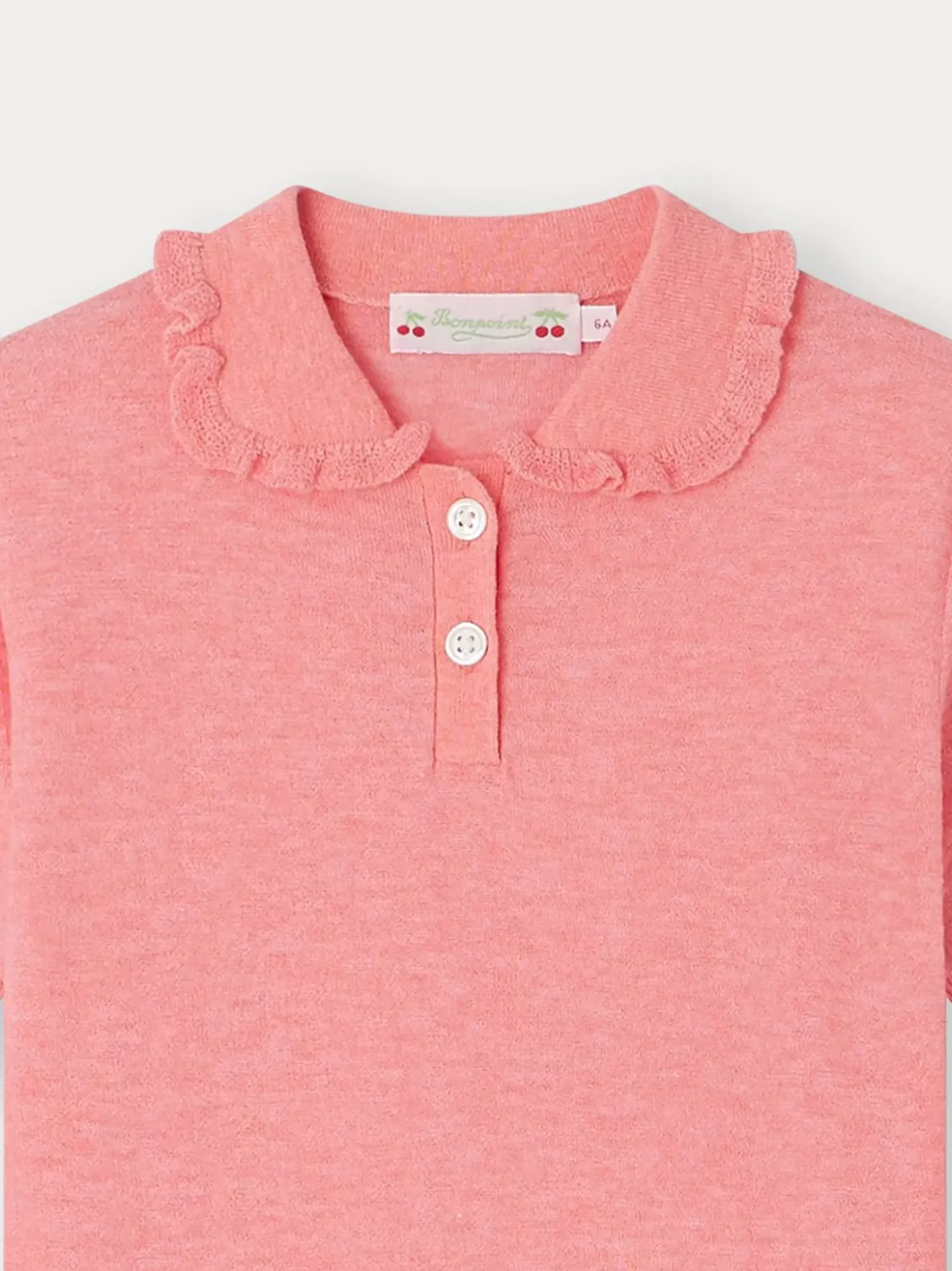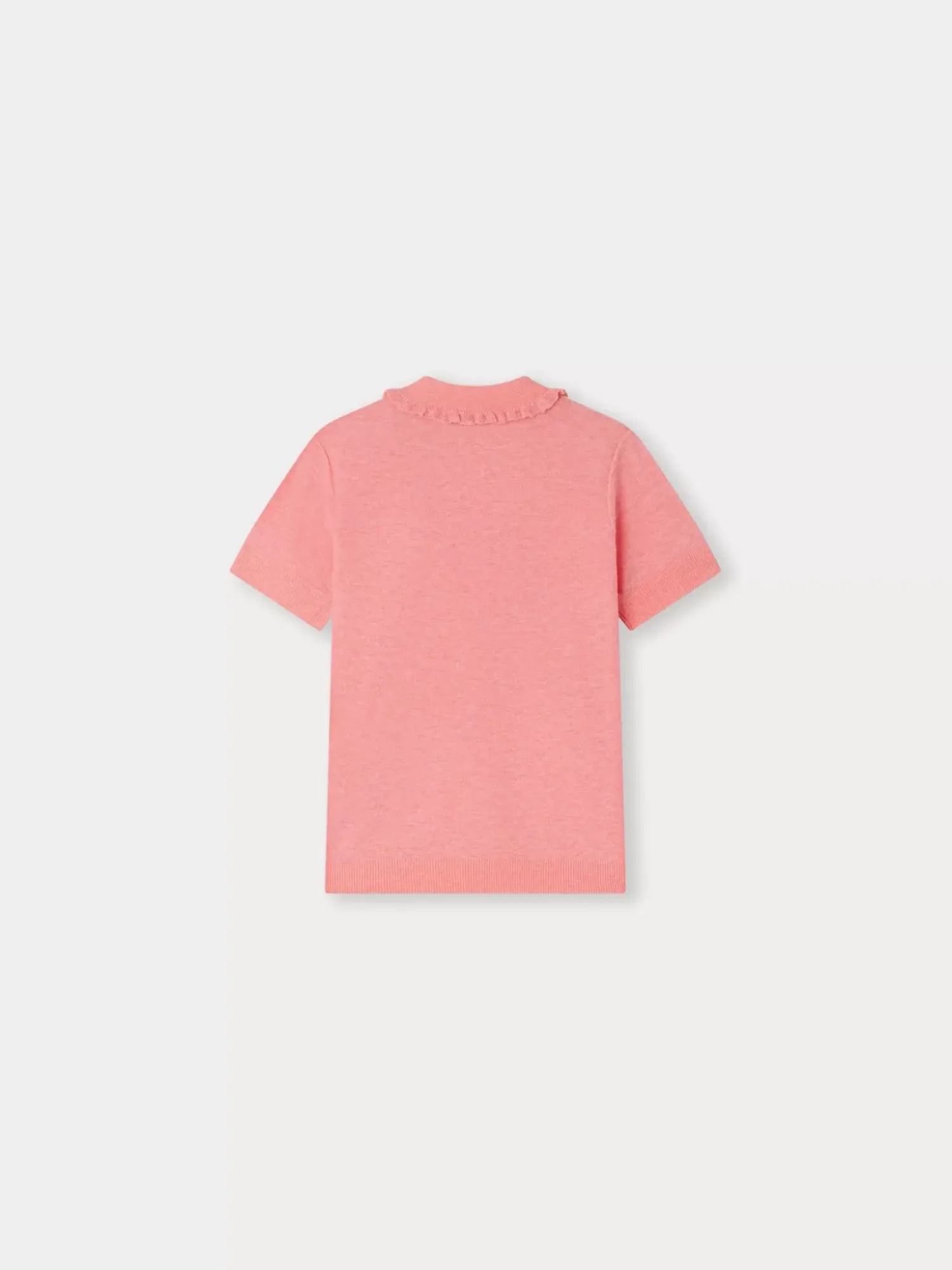 This Short-Sleeved Frynja Pullover For Girls Has A Charming Polo Shirt Collar Trimmed With A Delicate Ruffle. It Is Made From A Solid-Color Lightweight Knit For Easy Styling.
