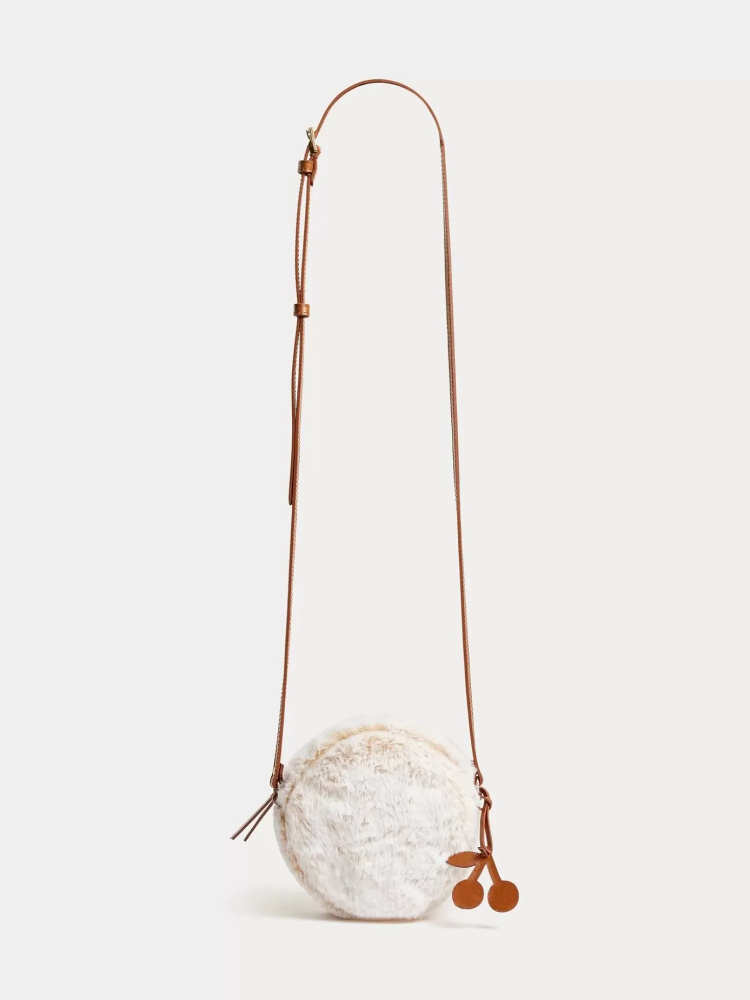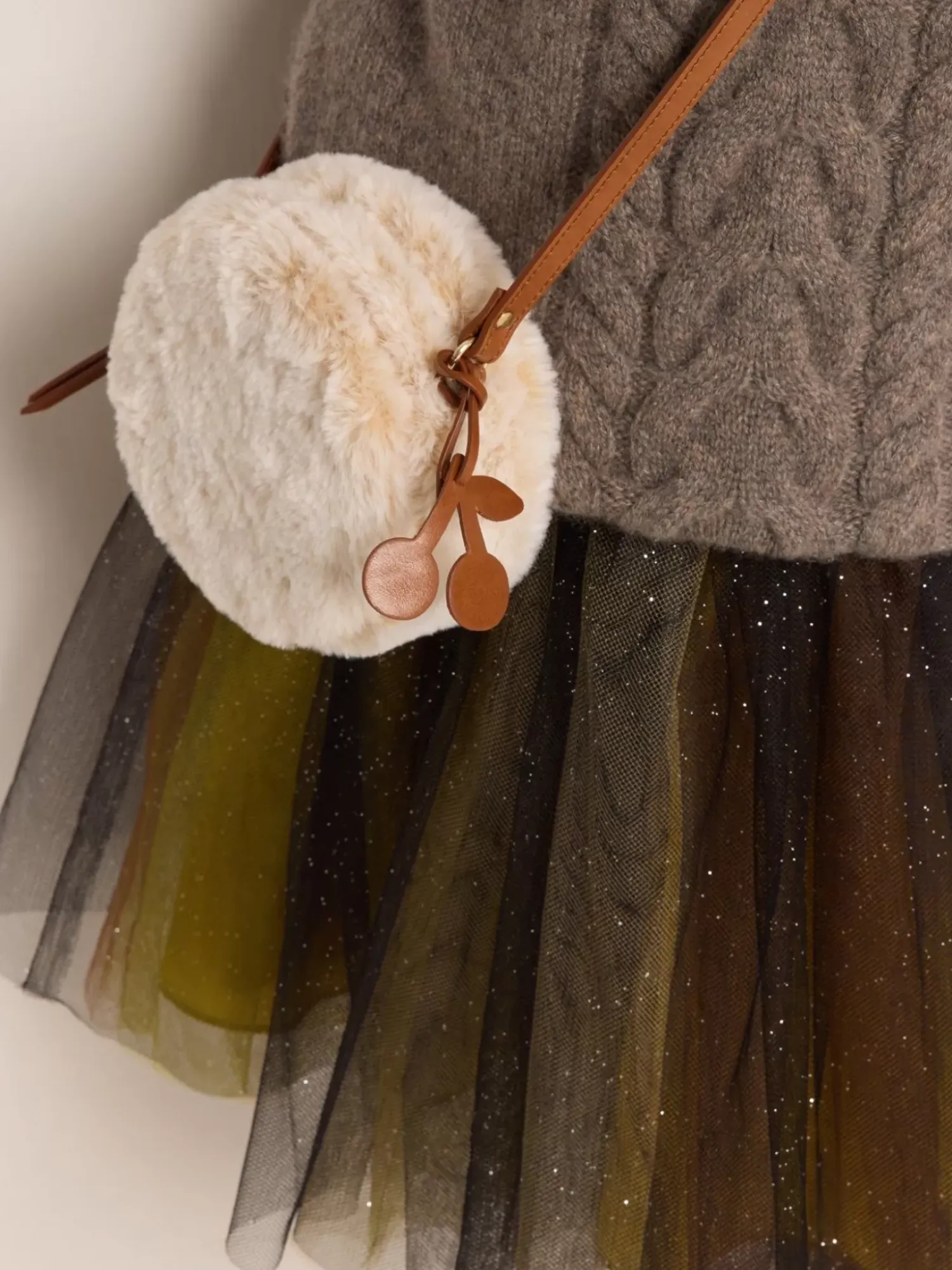 This Gomette Purse For Girls Stands Out With Its Ultra-Soft Faux Fur. This Small Model Features A Practical, Stylish Round Shape, Finished With A Solid-Colored Leather Cherry Charm.