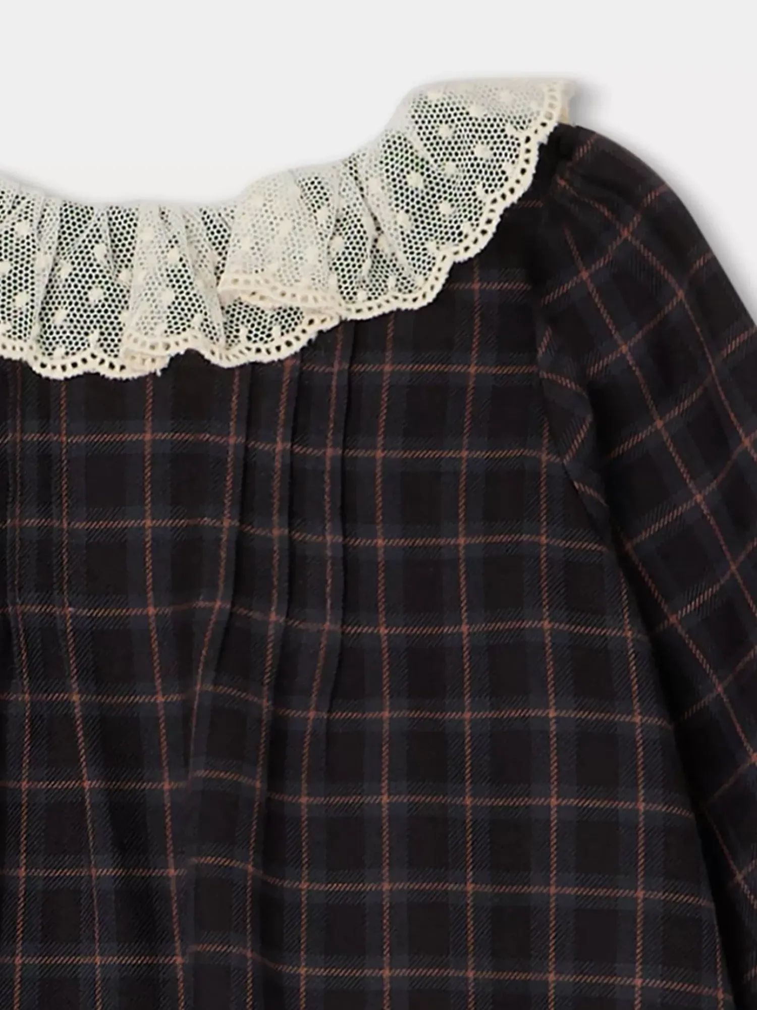 This Magnolia Dress For Babies Has A Comfortable Flared Cut And A Timeless Checked Pattern. Its Little Delicate Collar And Ruffle Cuffs Create A Charming Effect.