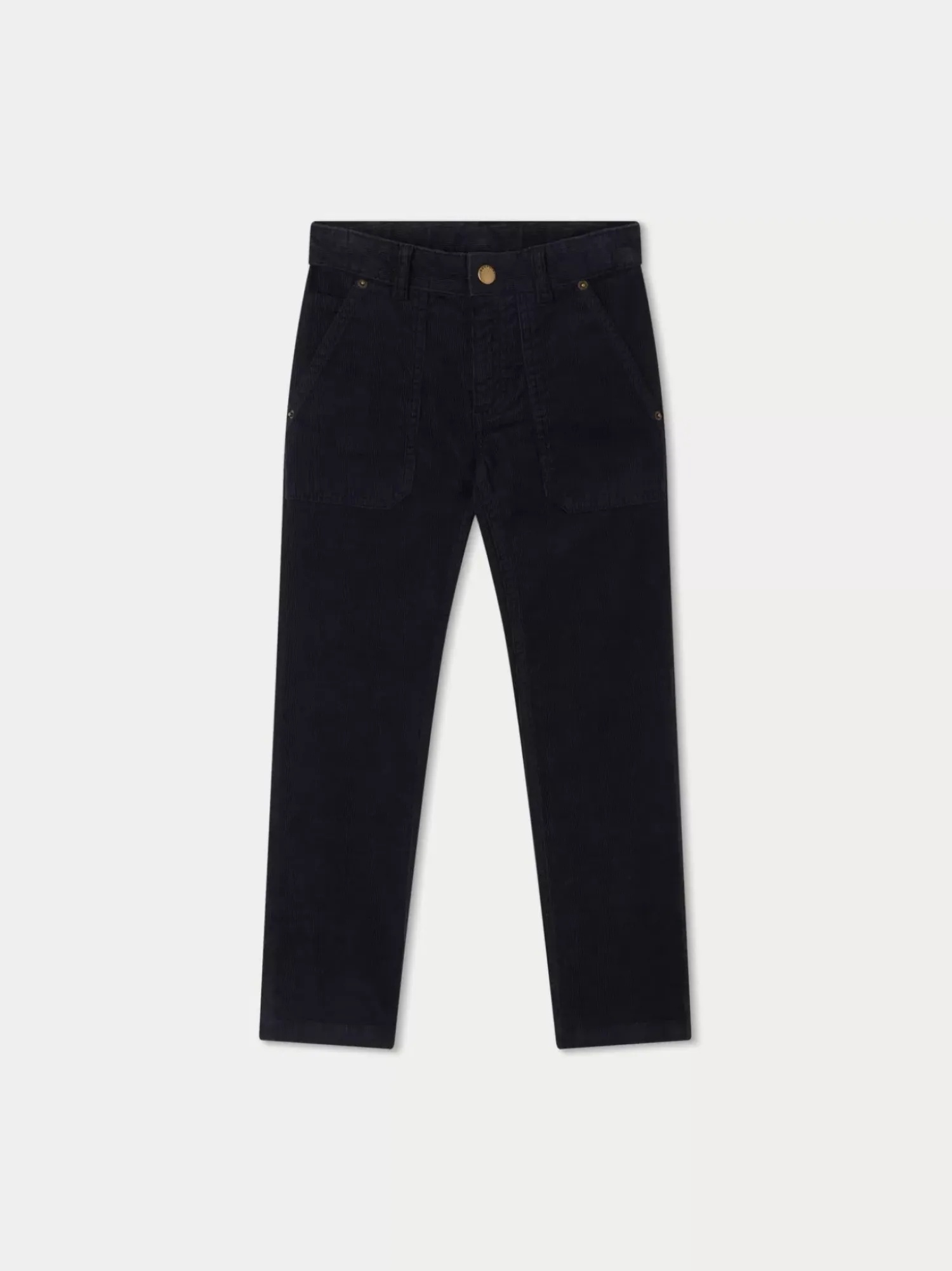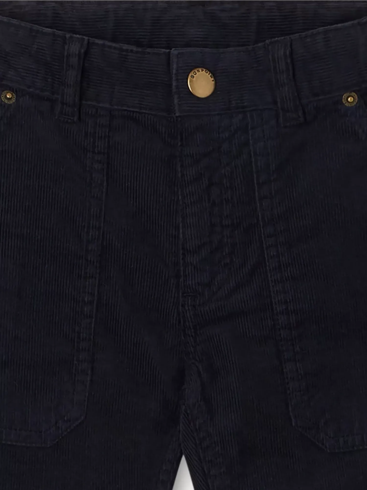 These Malone Boys’ Pants Are Made Of Refined Corduroy Material. The Two Patch Pockets On The Front Are Finished With Metallic Rivets.