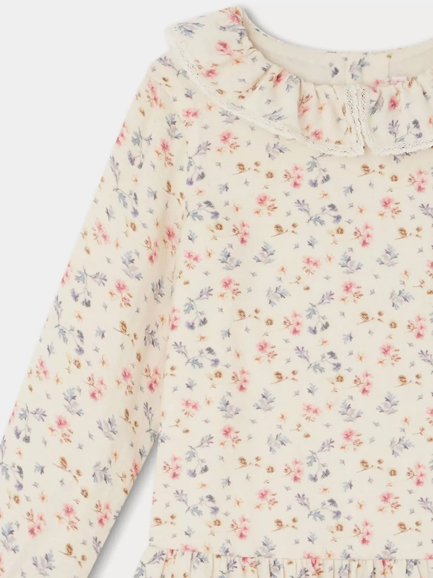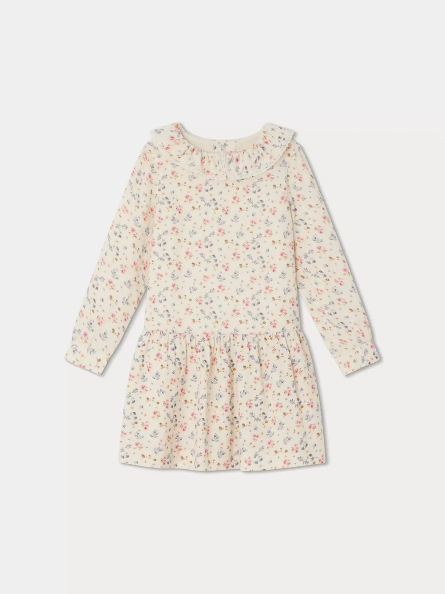 The Mariela Dress For Girls Offers A Charming Poetic Look With Its All-Over Small-Flower Print. Its Little Matching Collar Is Embroidered With Delicately Worked Lace.