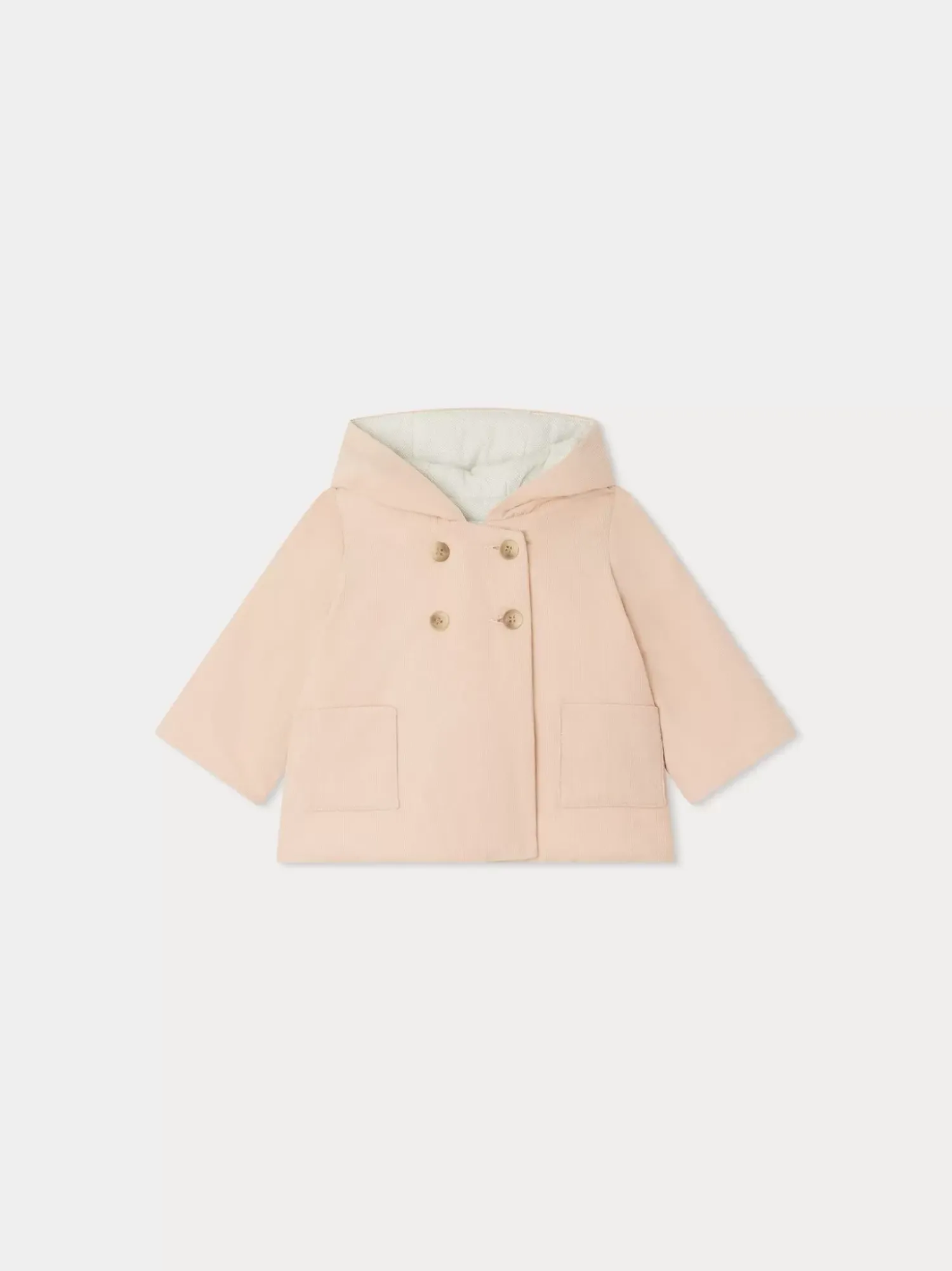This Lined Misha Jacket For Babies Is Made From Solid-Color Needlecord Fabric. The Double-Breasted Design Features A Fixed Hood And Two Patch Pockets.