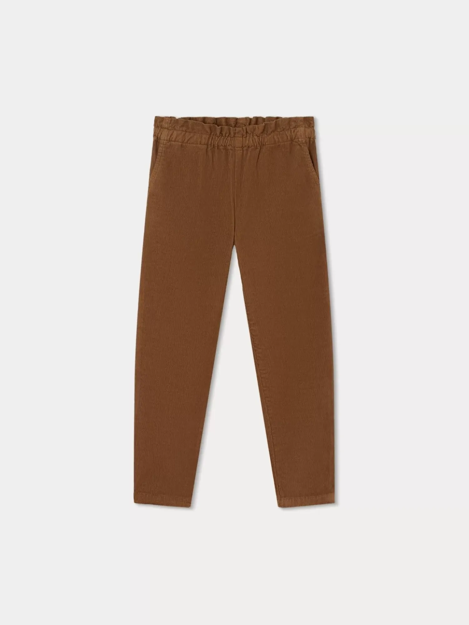 These Girls’ Pants Are Made Of Solid-Colored Corduroy Material Produced Using Water-Saving Washing And Dyeing Techniques. The Practical, Stylish Design Has A Tapered Cut And An Elastic Waist With Ruffles.