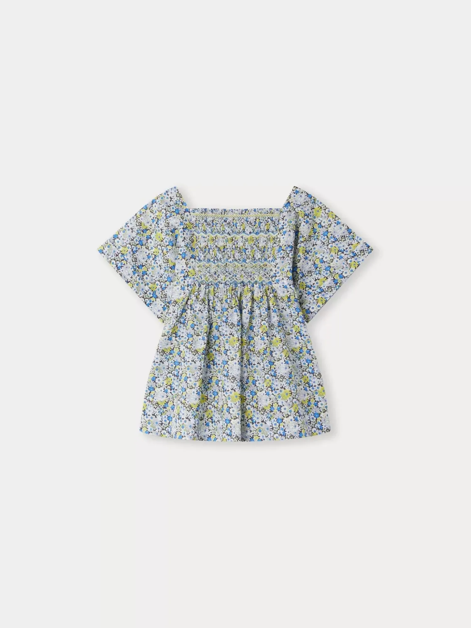 This Pays Organic Cotton Blouse For Girls Is Made From Charming Liberty Fabric With A Fresh, Colorful Pattern. It Features Hand-Embroidered Smocking On The Chest.
