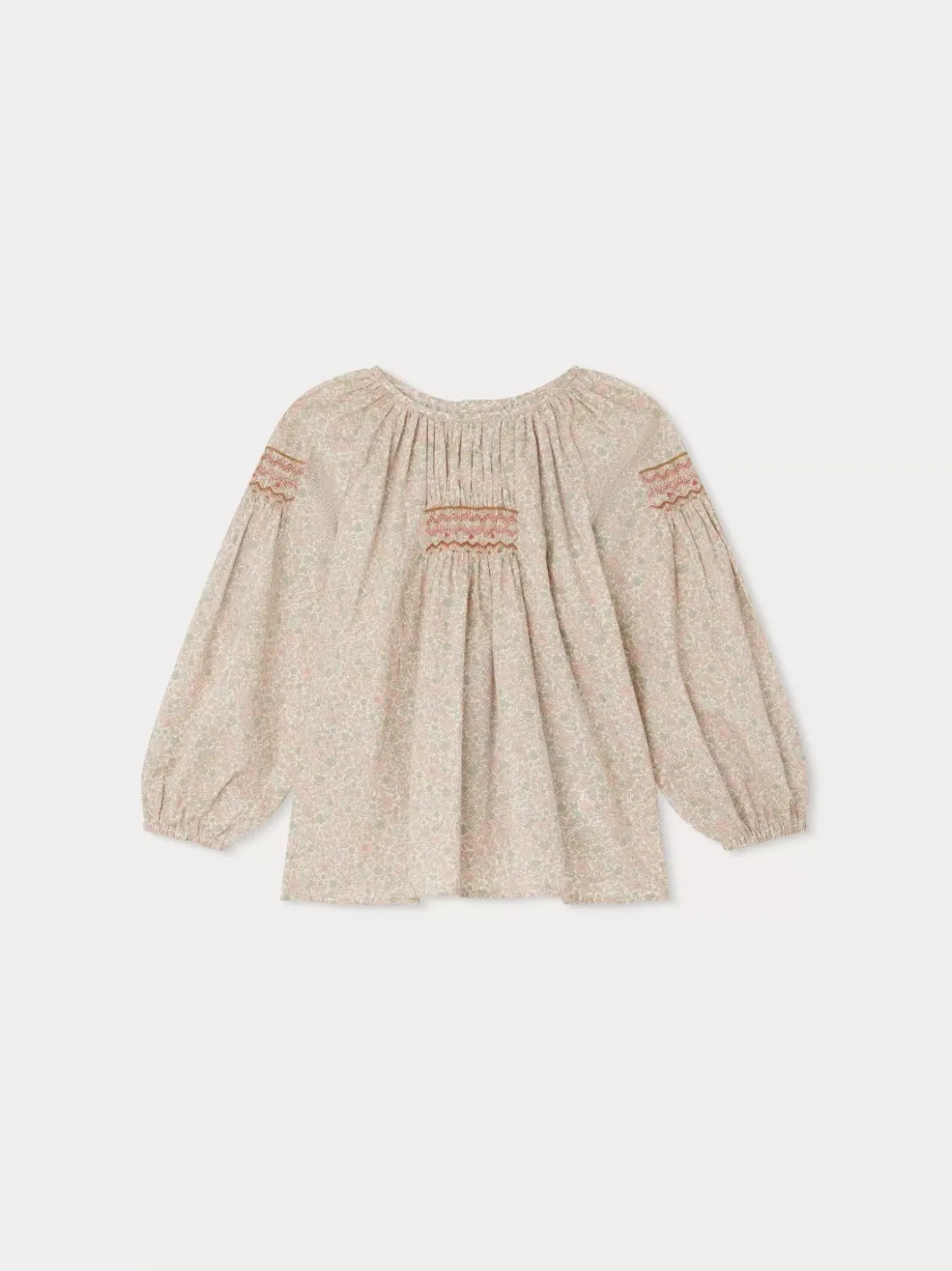The Iconic Poldie Girls’ Blouse Is Made Of Liberty Fabric With A Charming Motif, And Features A Lovely Circular Hem And Smocking Details, It Fastens With 3 Pearly Buttons At The Back.