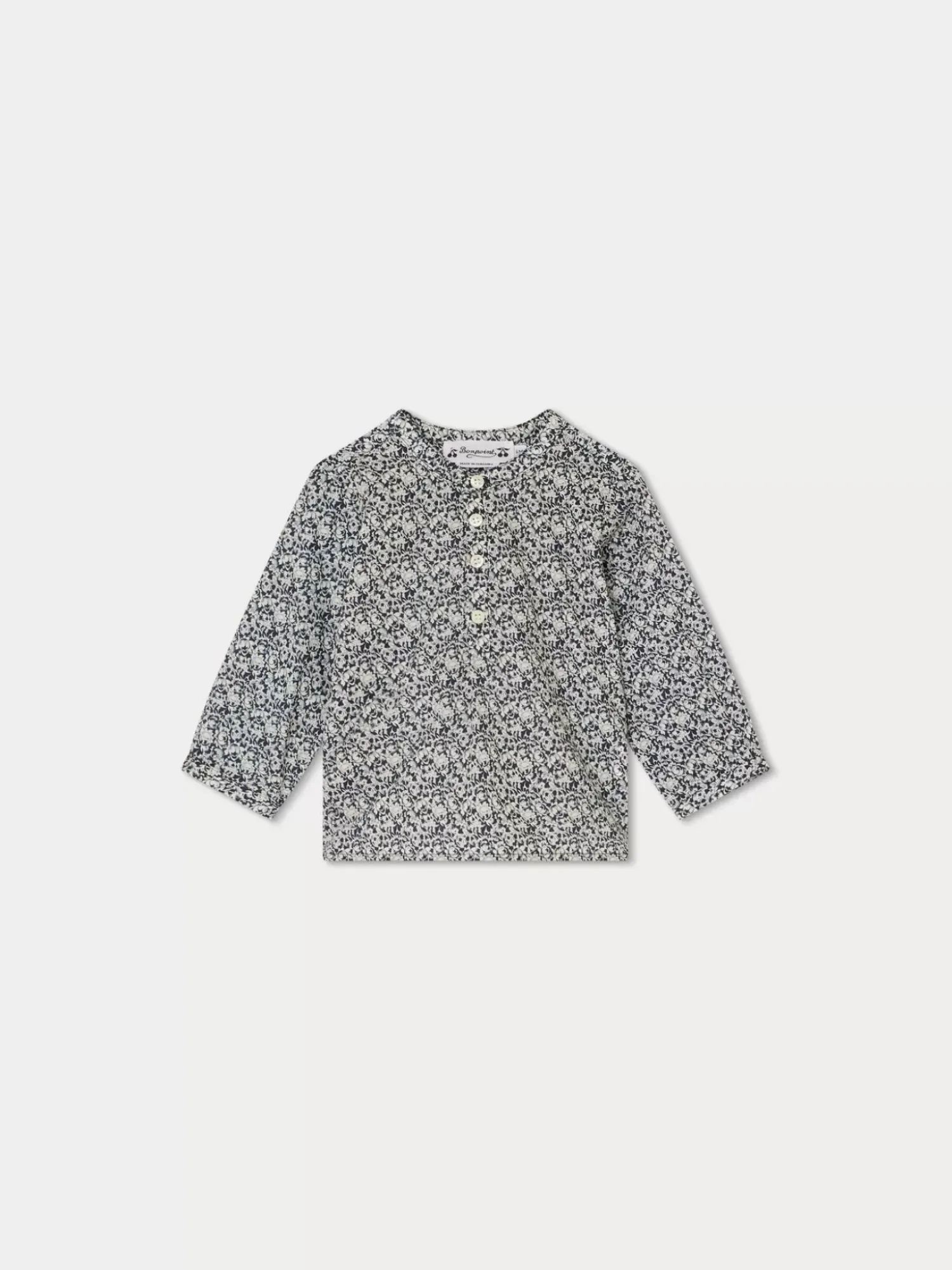 This Polisson Shirt For Babies Stands Out Thanks To Its Unique Two-Tone Liberty Fabric Adorned With Adorable Flowers. The Tunisian Collar Fastens With Four Buttons At The Front.