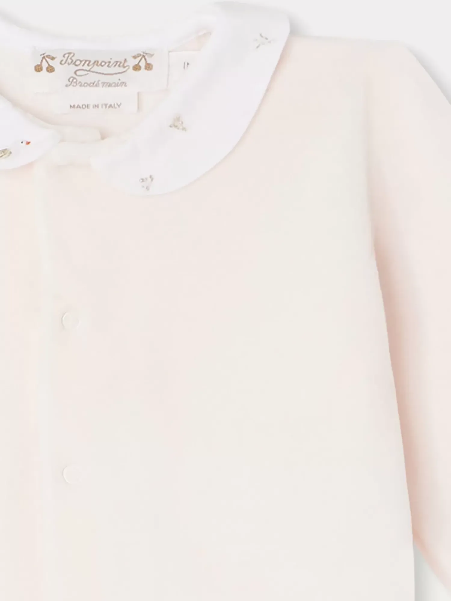 Avec Sa Forme Intégrale, Le Pyjama Tintina Garde Les Bébés Au Chaud Jusqu’Au Bout Des Pieds. Son Col Claudine Contrastant Se Pare De Motifs Brodés À La Main.