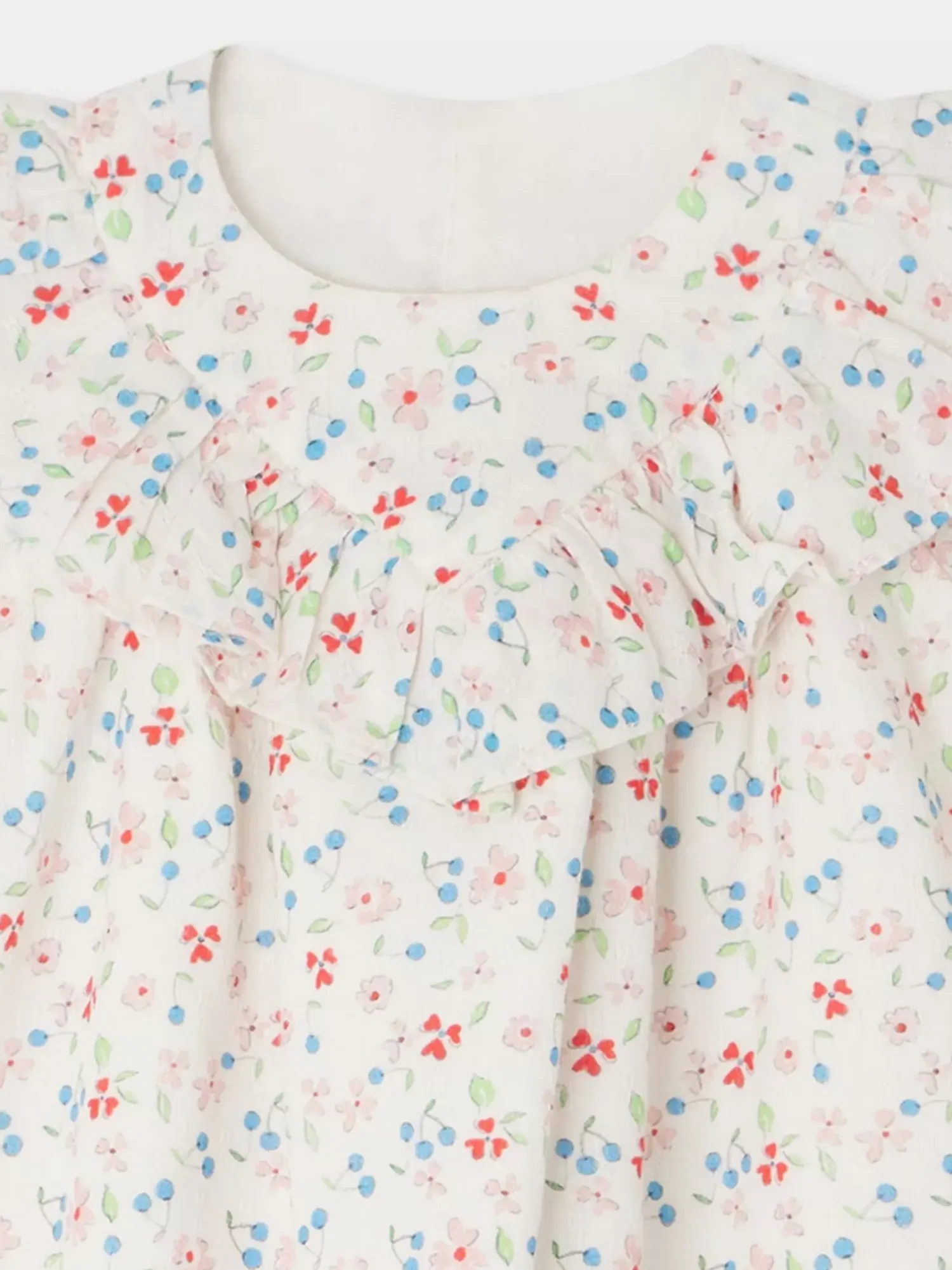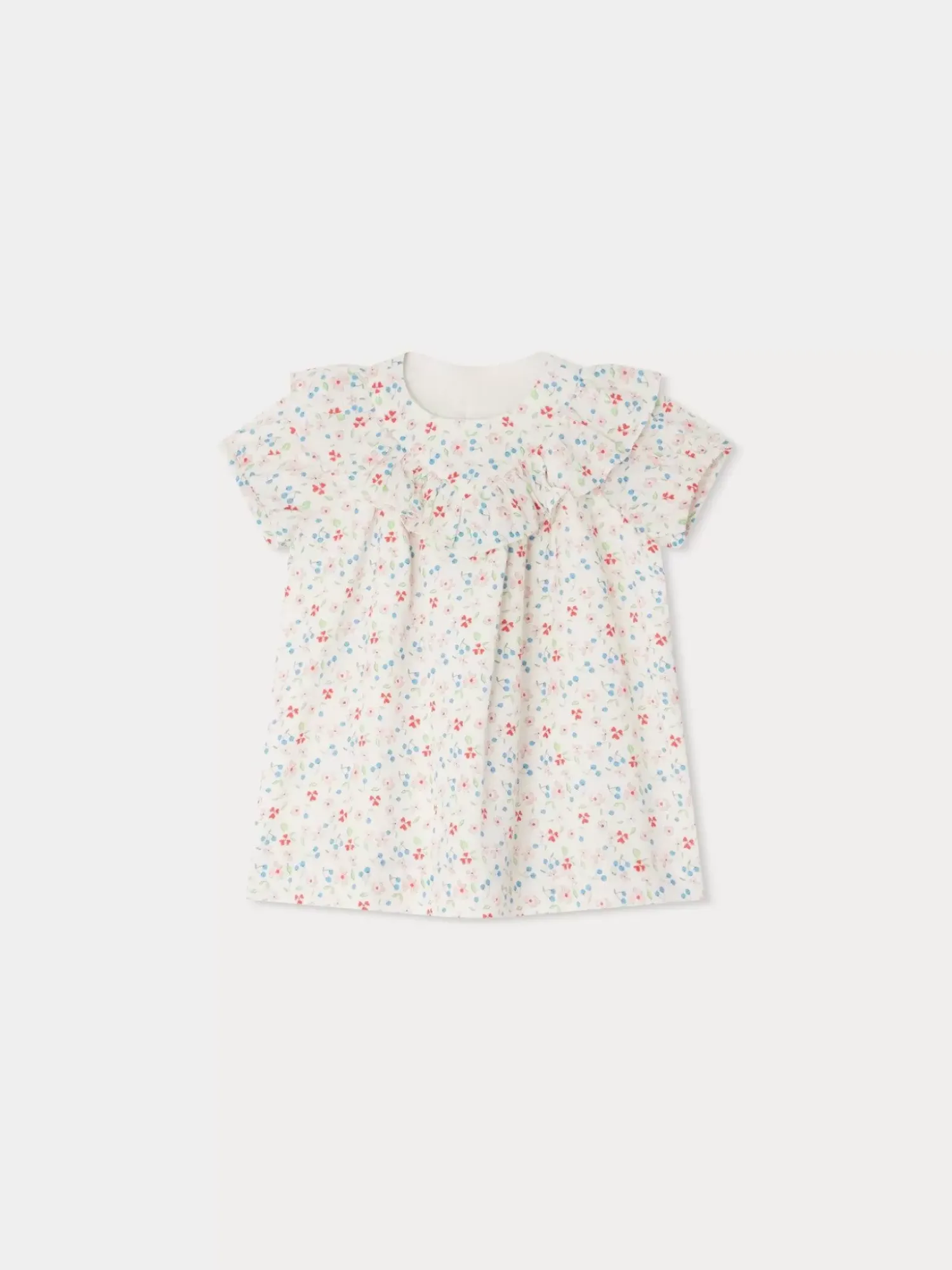La Robe Falbalili Mettra De La Tendresse Dans Le Vestiaire De Bébé Avec Son Imprimé Floral Intégral. Le Volant En Pointe Autour De L’Encolure Ronde Apporte Une Touche D’Originalité Au Modèle.