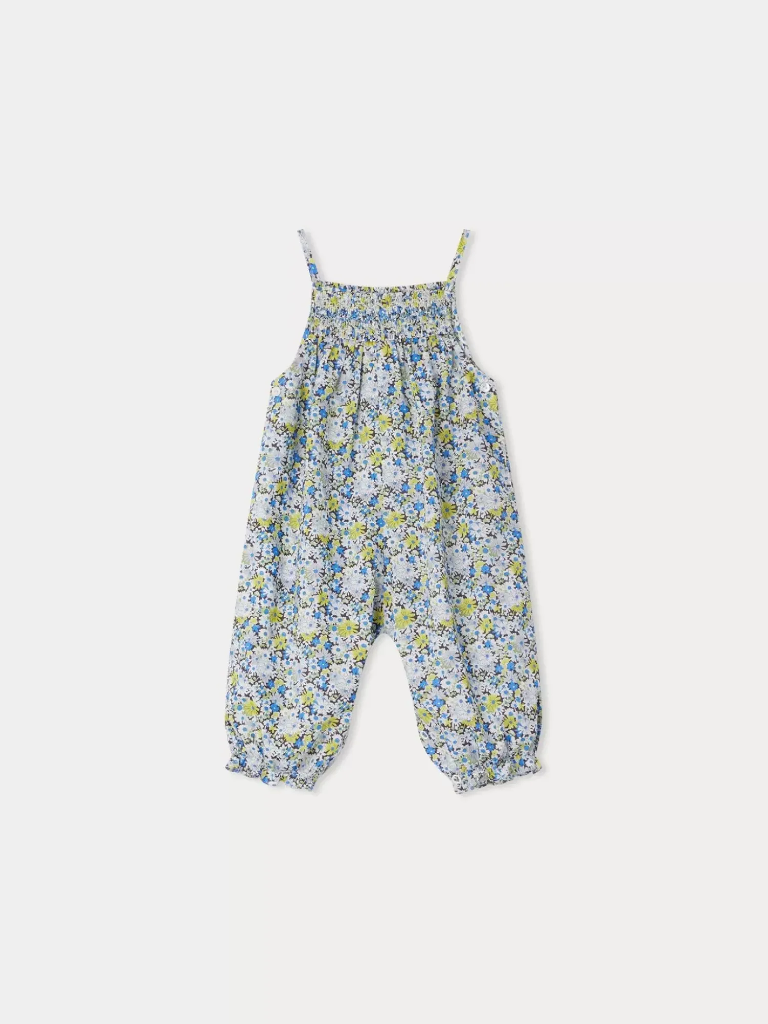 Bonpoint Salopette Smockee Lilisy Fleur Bleu |Newborn & Baby Bloomers, Shorts, And Pants