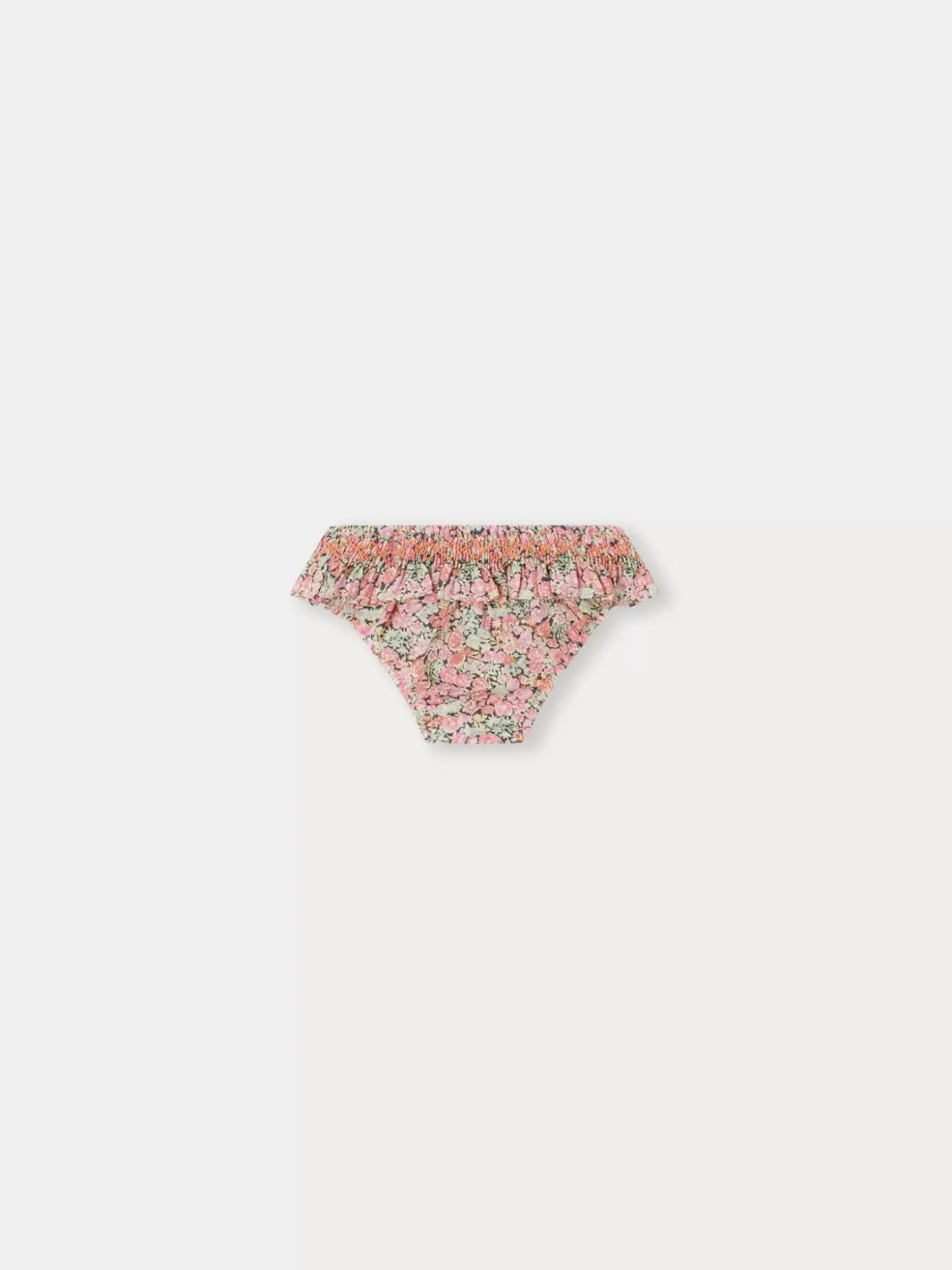 The Sardaigne Swimsuit For Babies Offers A Unique Style Thanks To Its Liberty Tana Lawn Fabric Decorated With Magnificent Floral Patterns. It Is Enhanced With An Elegant Ruffle And Hand-Embroidered Smocking At The Waist.