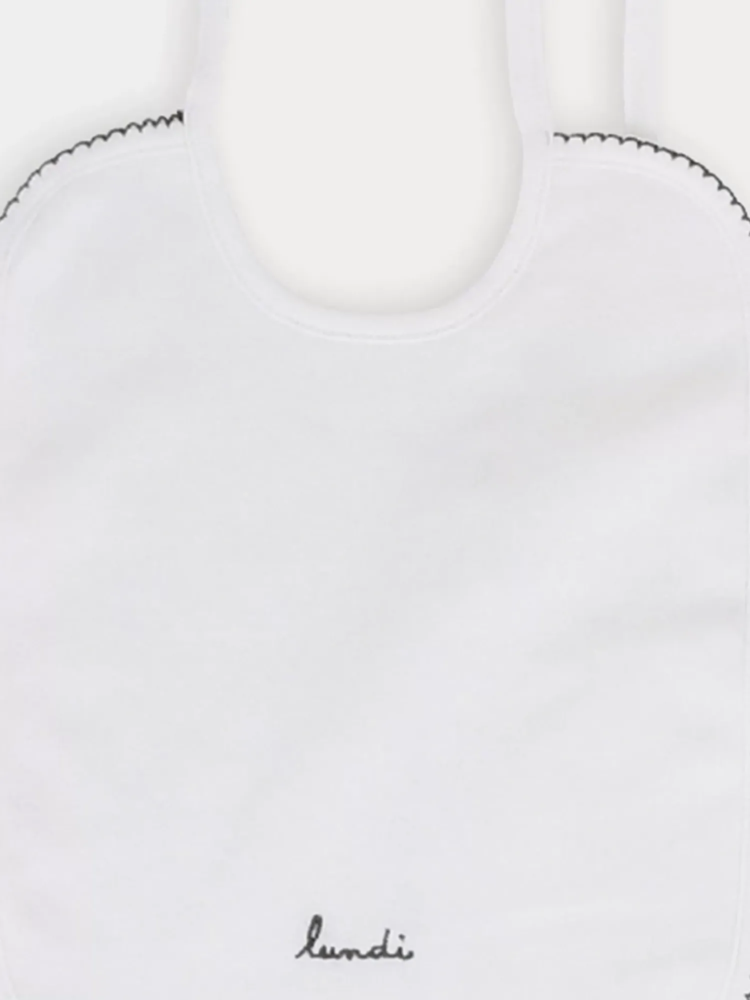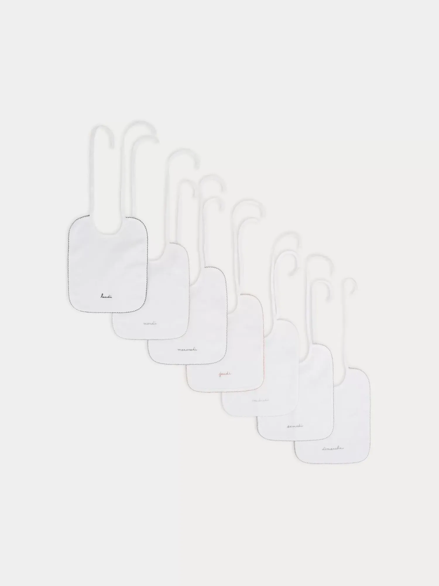 Baby Will Discover New Tastes Day After Day With This Set Of Embroidered Bibs. They Are Made Of Ribbed Cotton And Each Has A Different Colored Trim And A Delicate Embroidery For Every Day Of The Week.