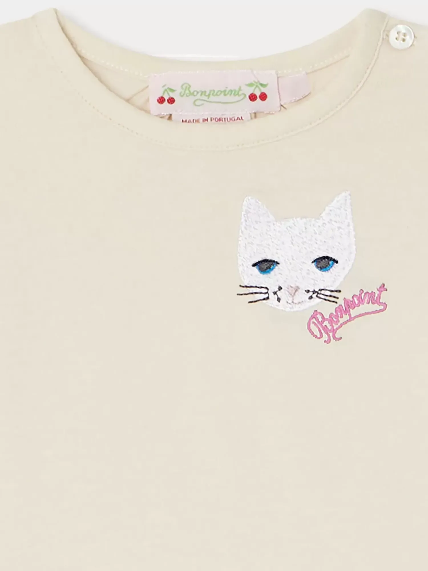 This Long-Sleeved Tahsina T-Shirt For Babies Is Made From Organic Cotton With Buttons On The Shoulder. The Iconic Design Is Adorned With A Cat’S Head And The Bonpoint Signature Embroidered On The Chest.