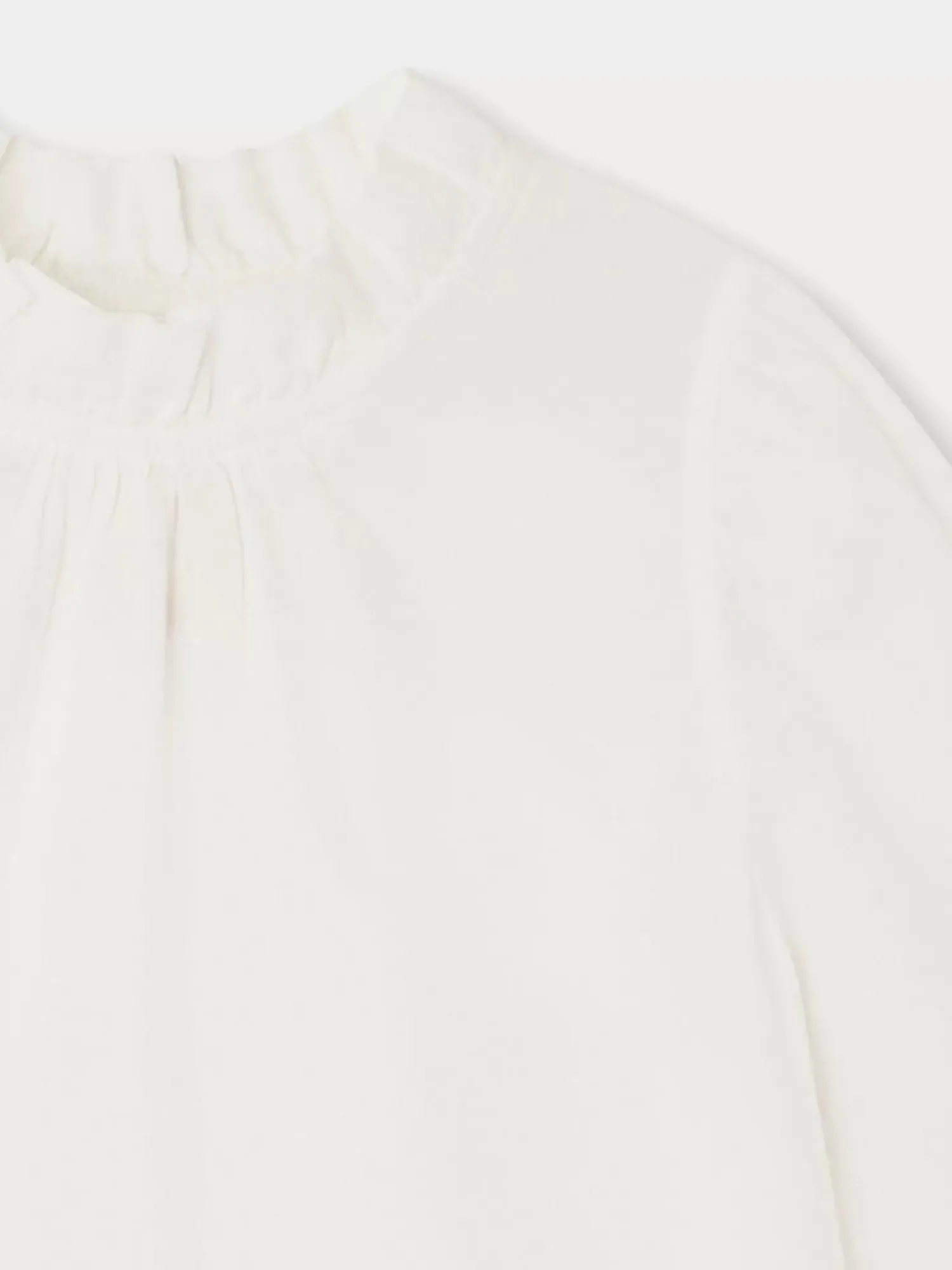The Tallulah Blouse For Girls Is Made From Organic Cotton And Has An Eye-Catching Gathered Neck, A Pleated Yoke, And Puffed Sleeves With Fitted Cuffs. It Fastens At The Back With Buttons.