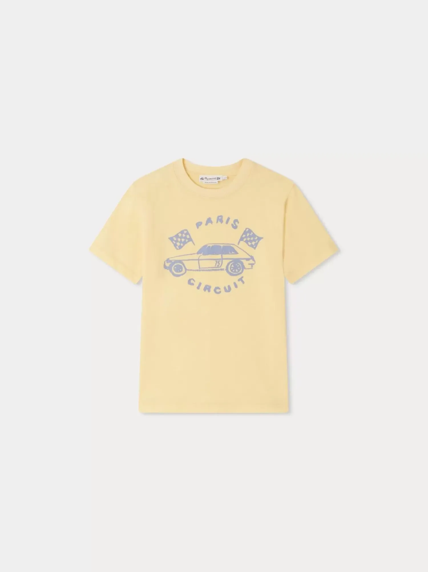 This Thibald Short-Sleeved T-Shirt For Boys Features A Charming Race Car Print On The Front. It Is Made Of Recycled Materials.