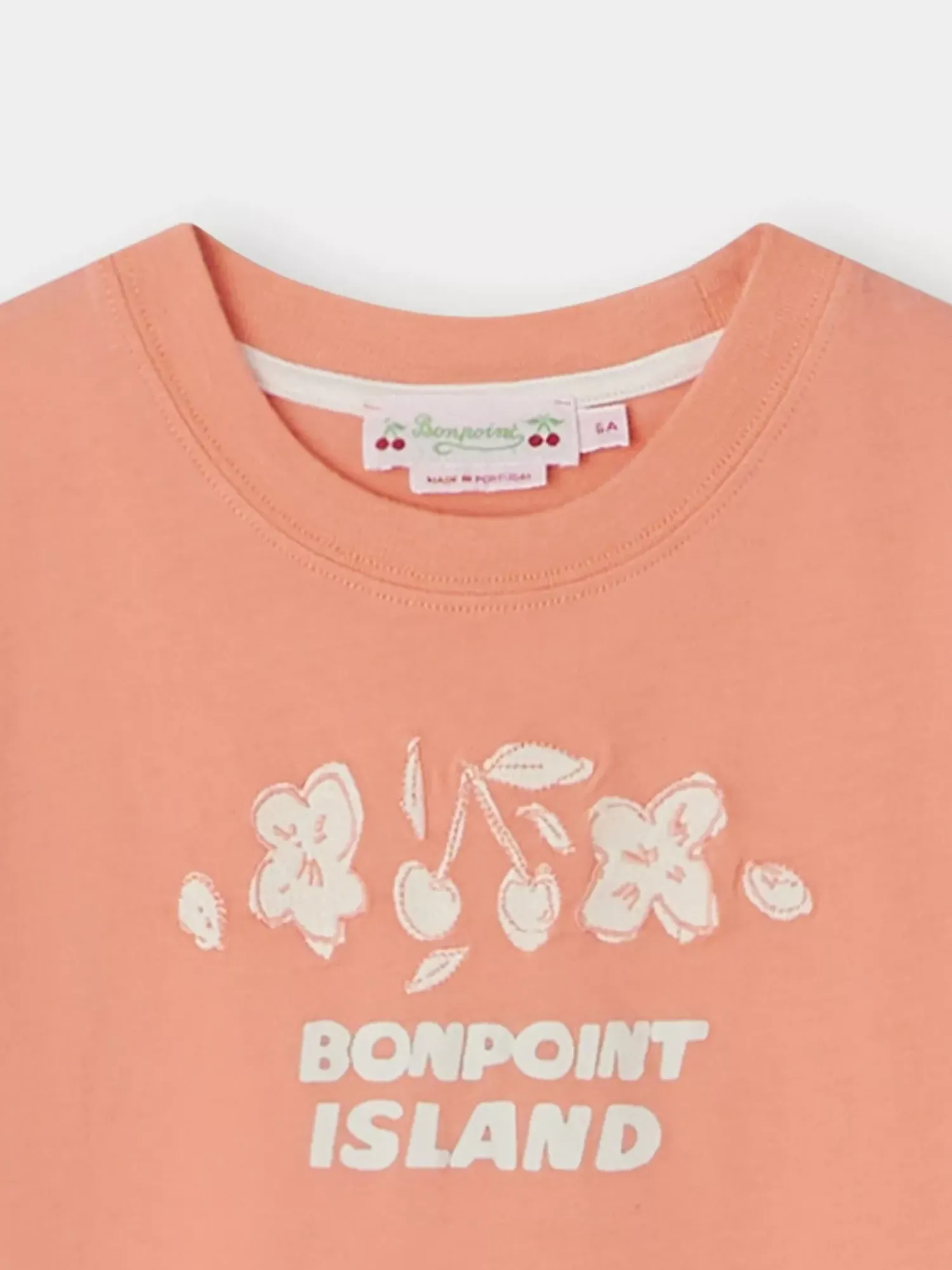This Thida Short-Sleeved T-Shirt For Girls Features A Distinctive Flower And Cherry Motif On The Front, With A “Bonpoint Island” Inscription Below. It Is Made Of Organic Cotton.