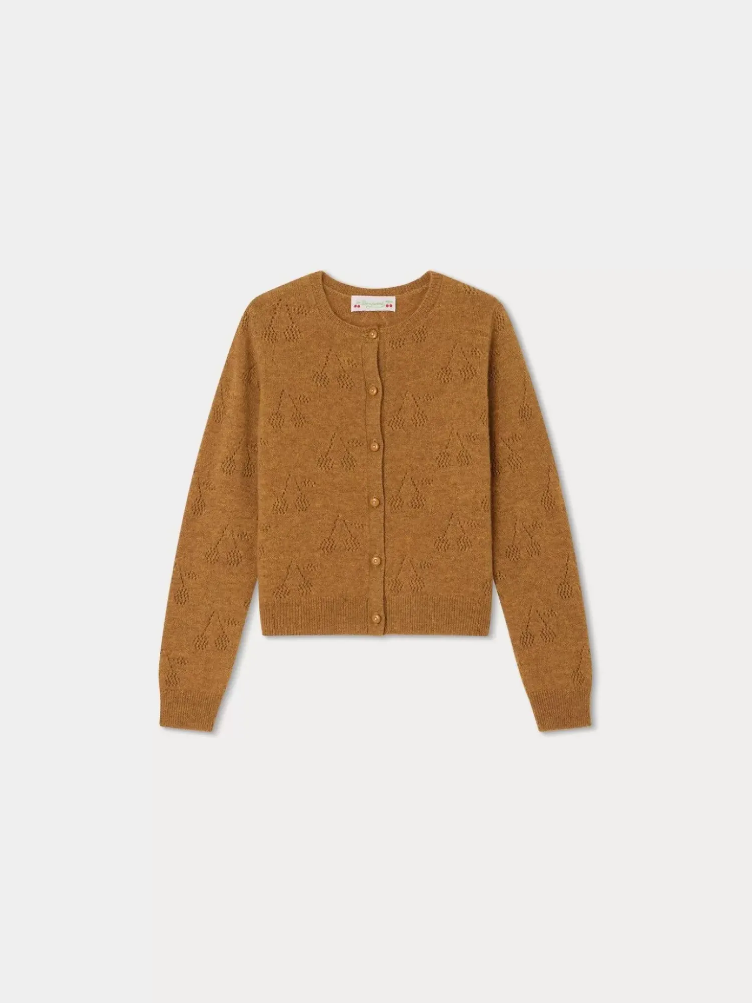 This Thindra Cardigan For Girls Features A Delicate Allover Openwork Pattern That Revisits The Iconic Cherries. The Cashmere Fabric Guarantees Softness.