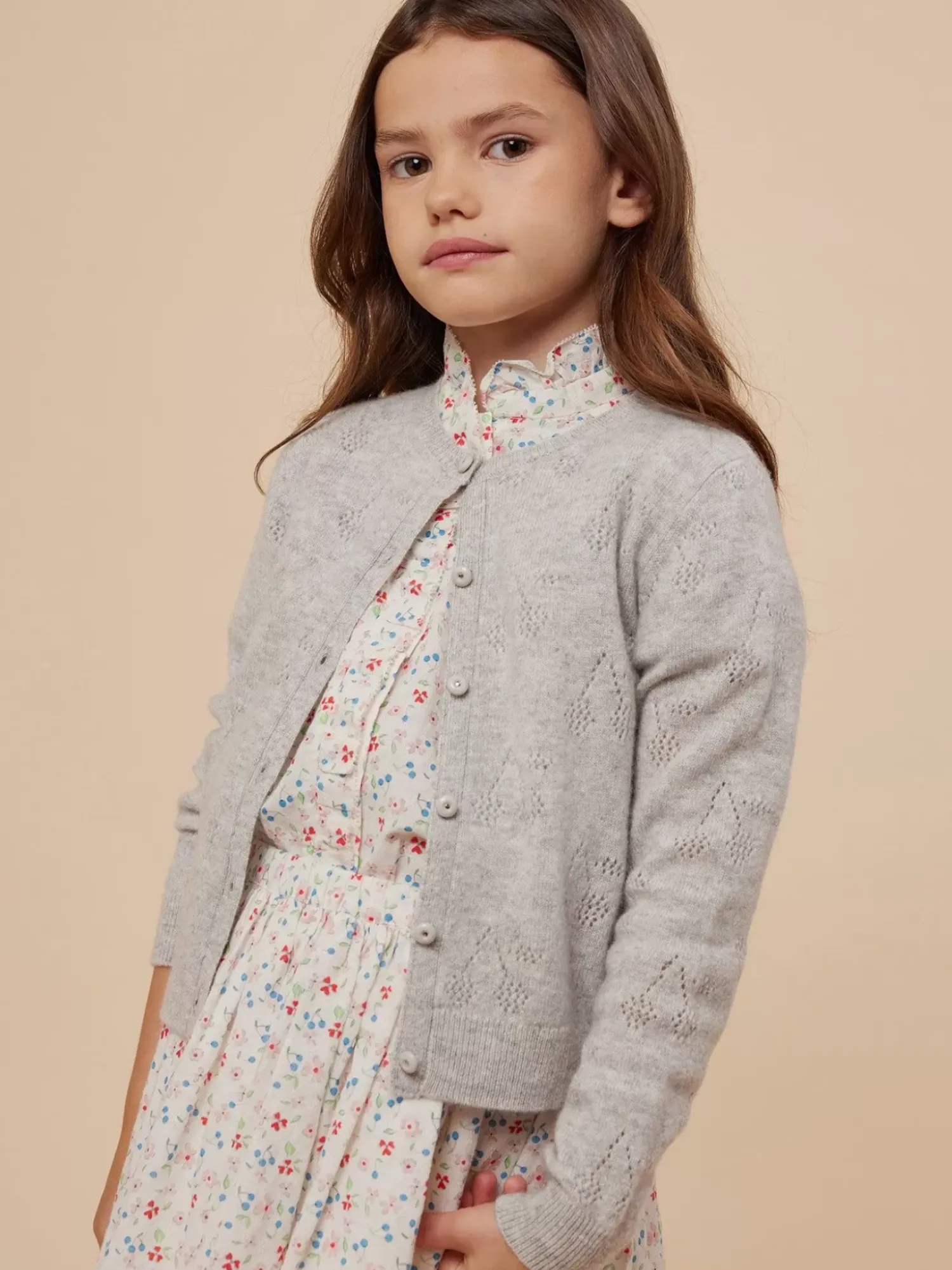 This Thindra Cardigan For Girls Is Made From Extra Thin Undyed Cashmere And Is Covered With Openwork Cherries. It Fastens At The Front With Six Petite Buttons.