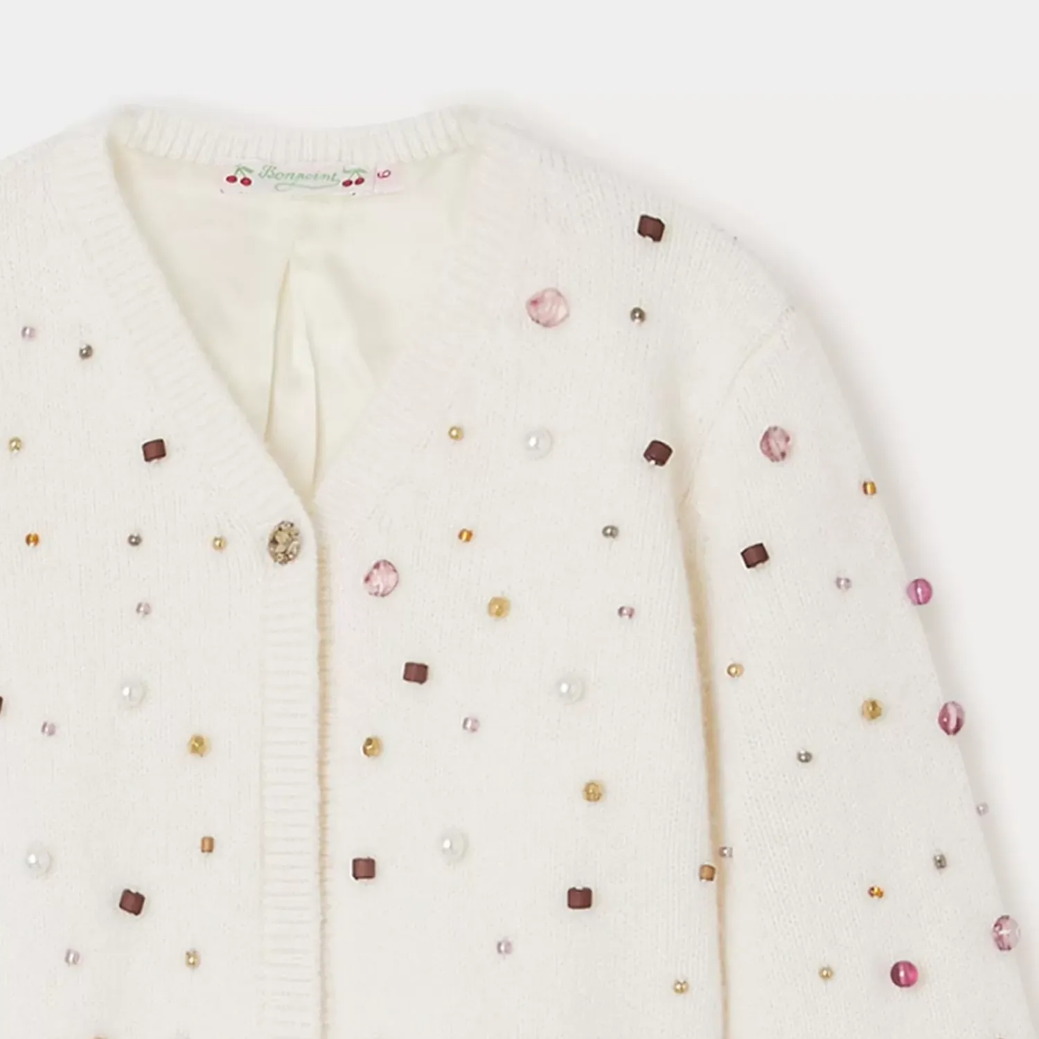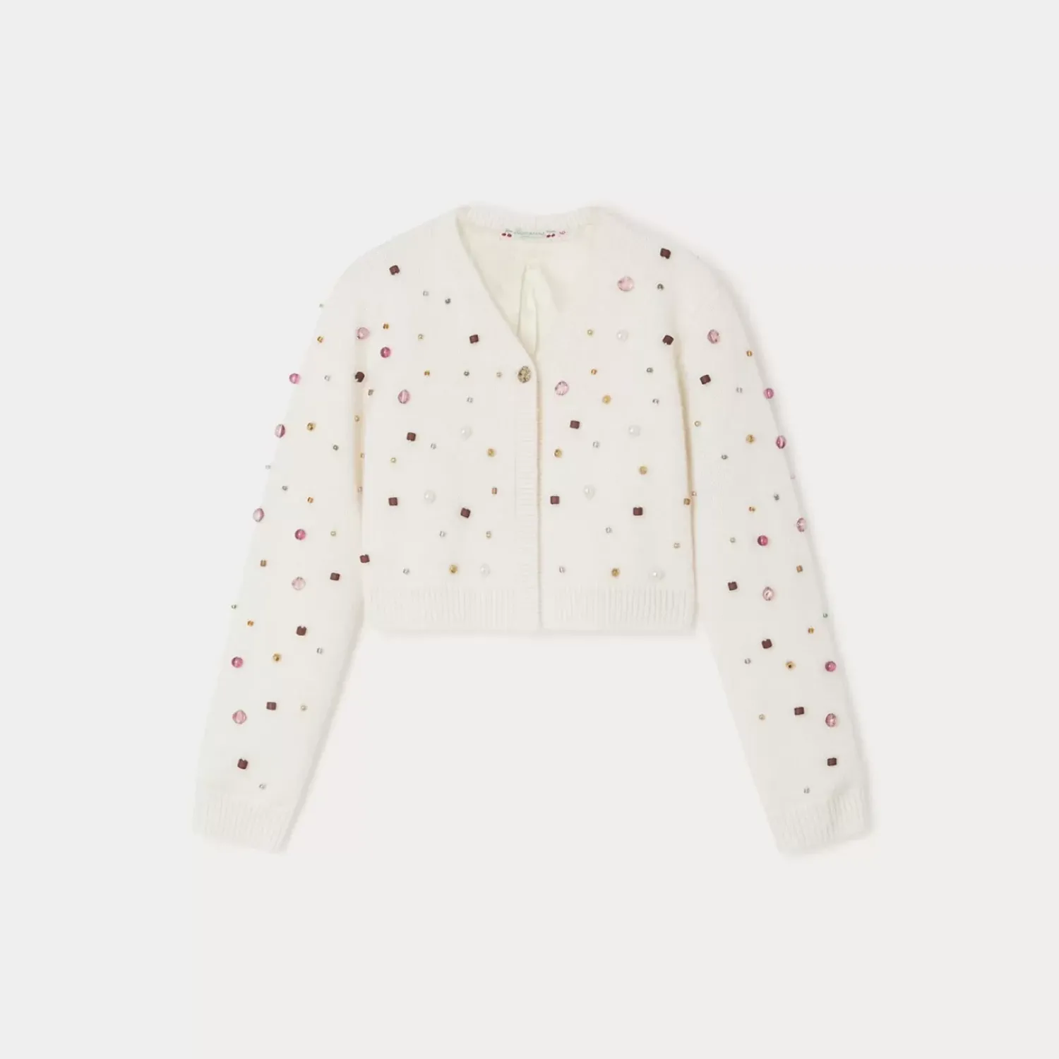 This Tholmine Short Cardigan For Girls Stands Out Thanks To Its Hand-Embroidered Novelty Beading. It Is Lined With Silk For Added Softness And Elegance.