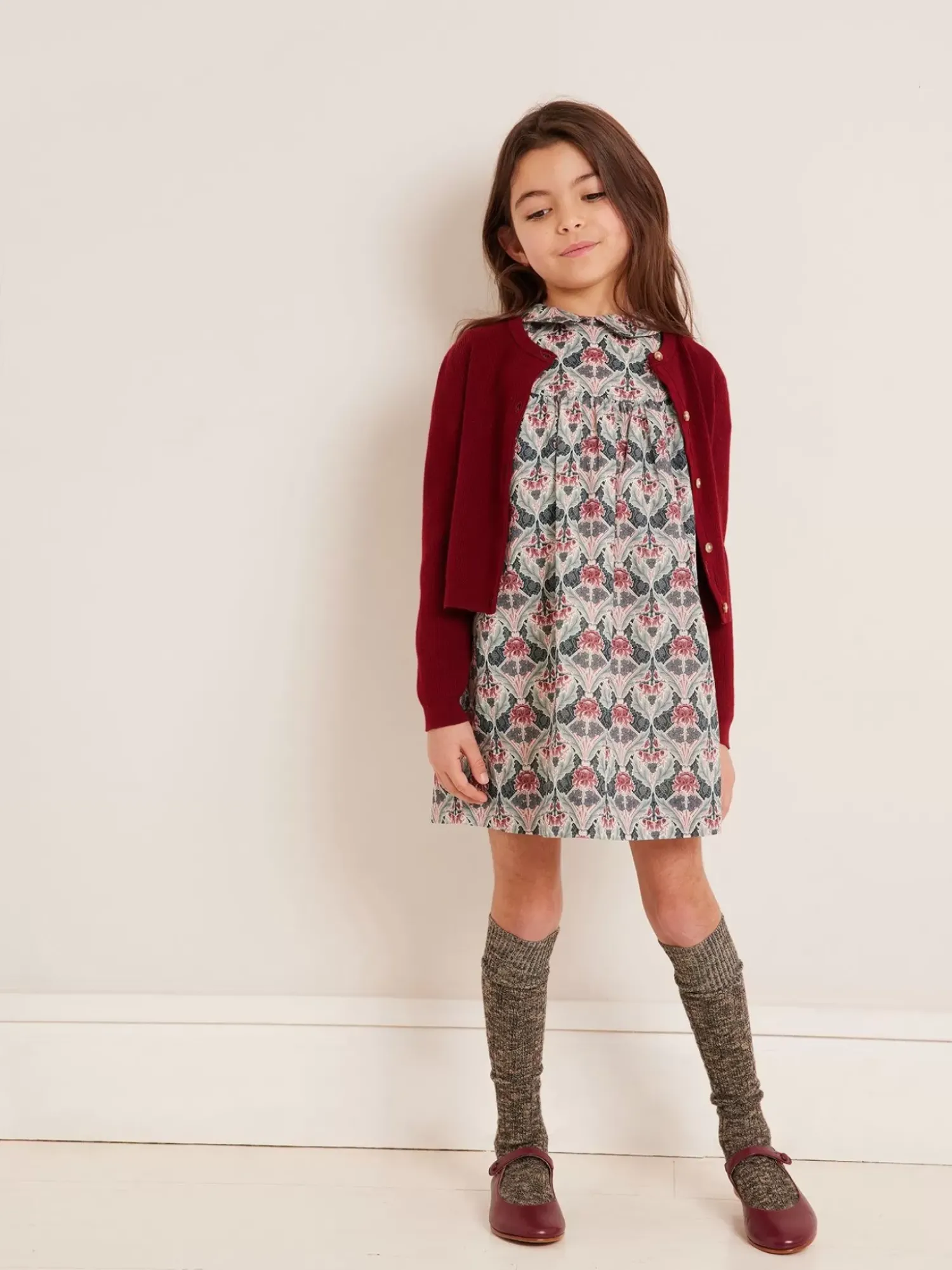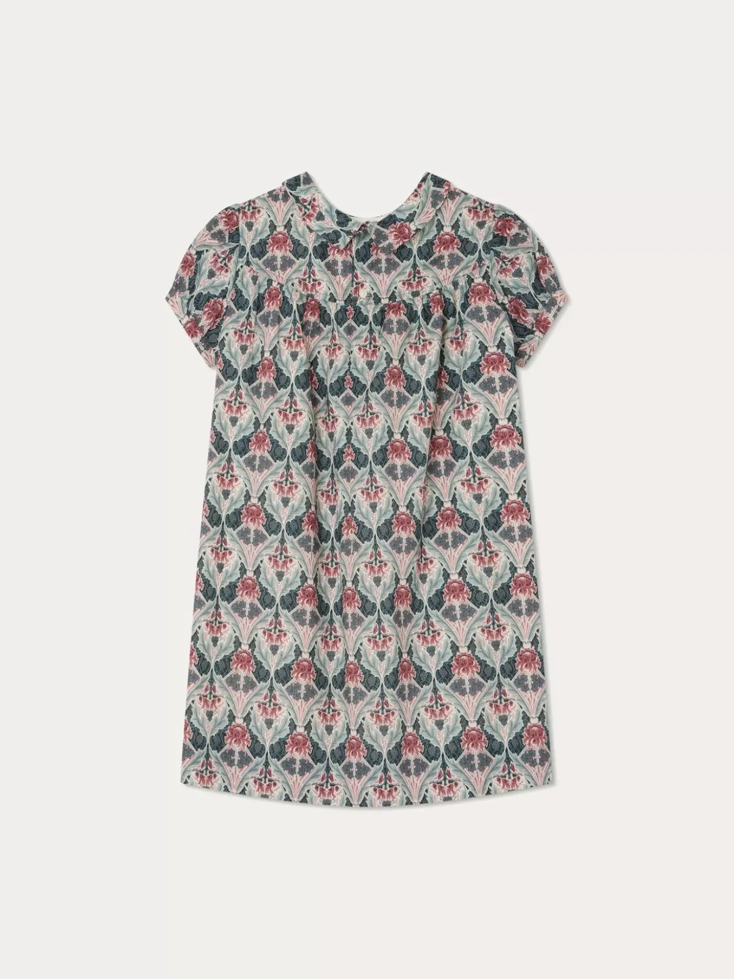 This Tia Dress For Girls Is Very Elegant With Its Shirt Collar And Short Puffed Sleeves. It Is Made From Organic-Cotton Liberty Fabric.
